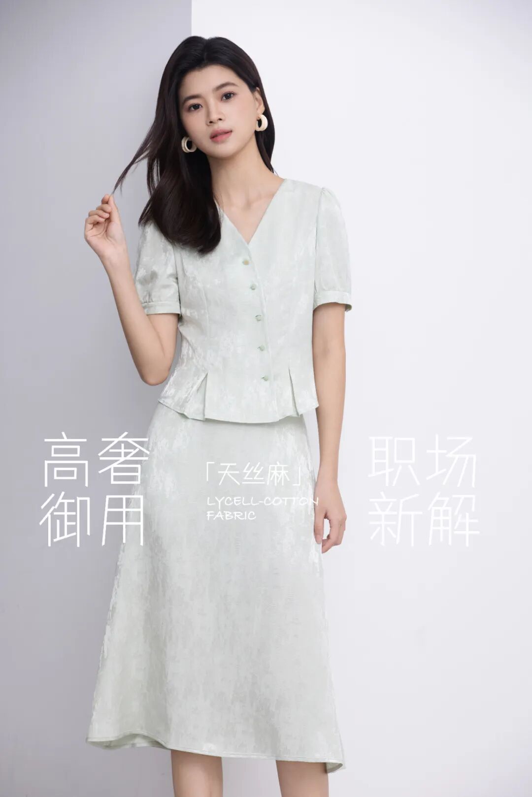 拥有奢侈品牌同等质感的天丝棉,既有棉的透气亲肤,又具备丝的高级质感,完美诠释当代职场女性刚柔并济的处世哲学。