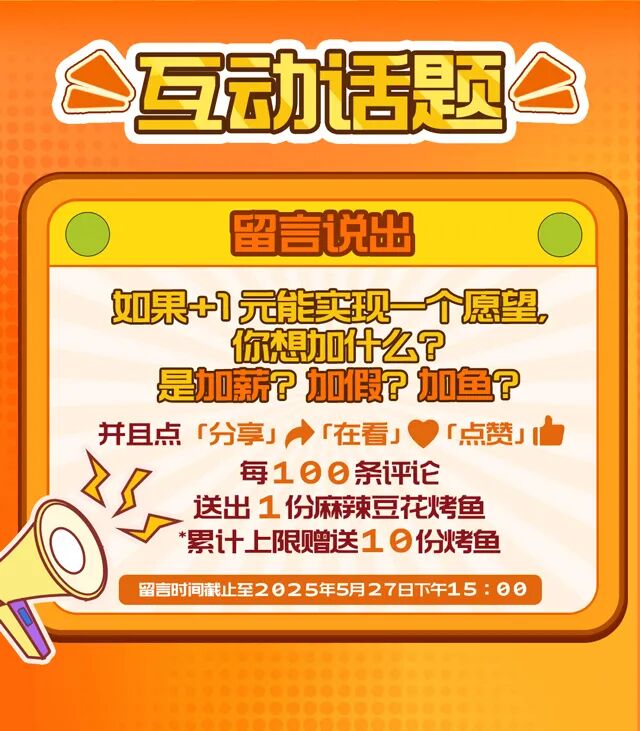 注:1.推文留言活动时间:2025年5月20日-2025年5月27日,2025年5月28日将在留言区公布留言中奖名单,奖品为麻辣豆花烤鱼(凌波鱼)一份;2.奖品以卡券形式发放至会员卡包,具体卡券有效期与使用规则,可在【探鱼烤鱼】小程序 -【我的】-【优惠券】卡券详情中查看;3.仅限大陆地区探鱼餐厅堂食使用,华为店不参与活动;4.每个订单仅可使用一张卡券,不可与其他优惠同享,餐前不设外带;