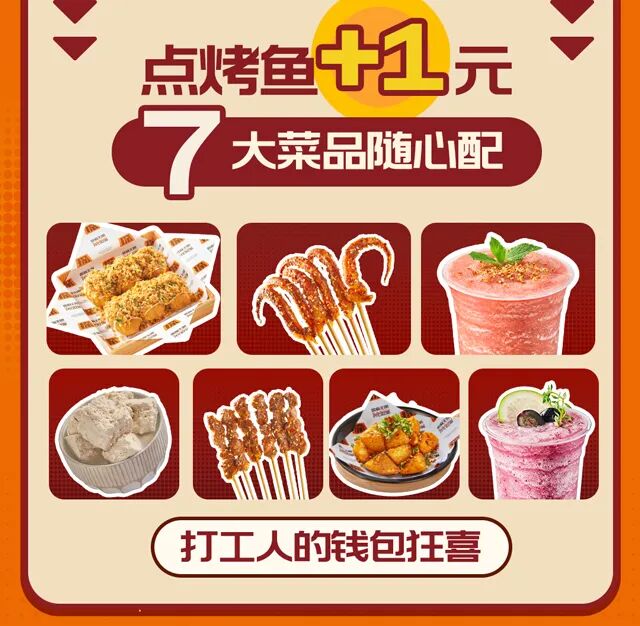 摘要:点烤鱼+1 元,7 大人气菜品随心配