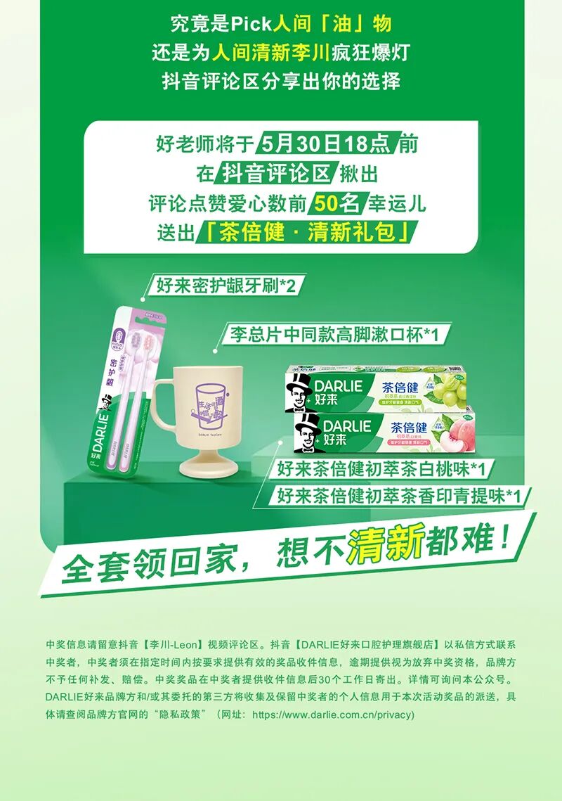 去油清新版李总限时返场,Well~这份清新请「茶」... https://v.douyin.com/KZ7sA0bBsPM/ dnd:/ 05/14 u@s.eB
