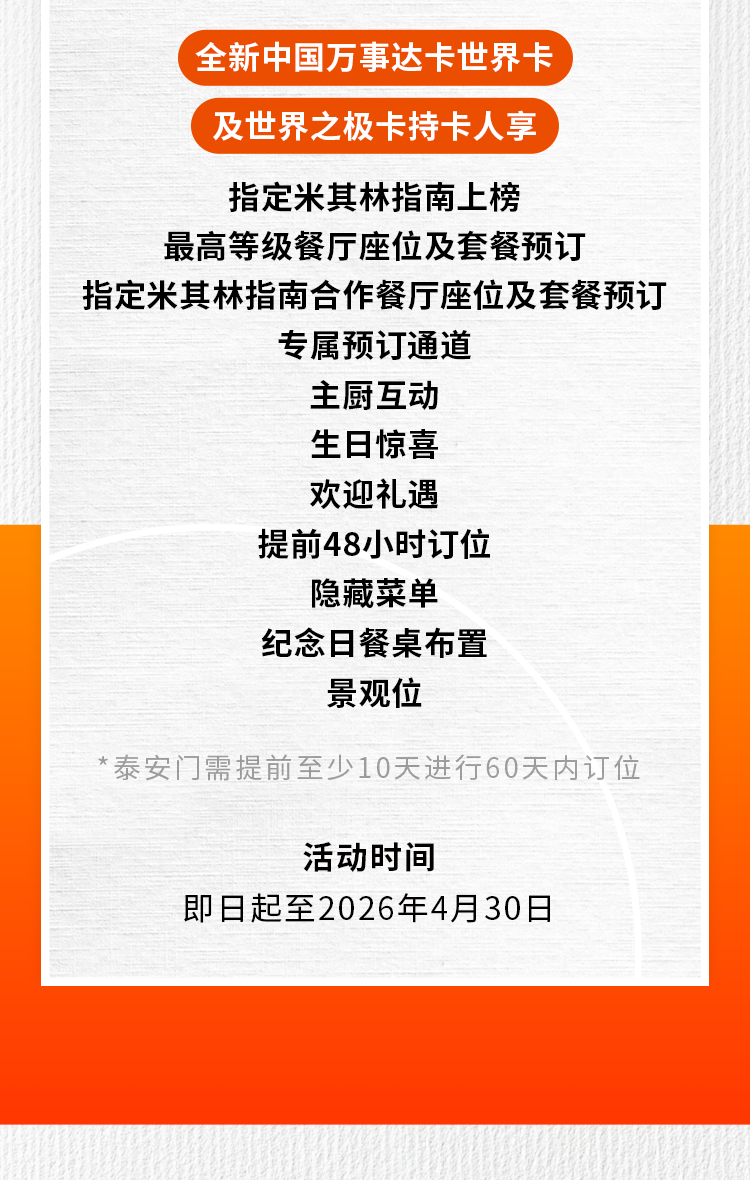 摘要:全新中国万事达卡持卡人可享米其林餐厅、携程度假农庄、租租车超值礼遇!