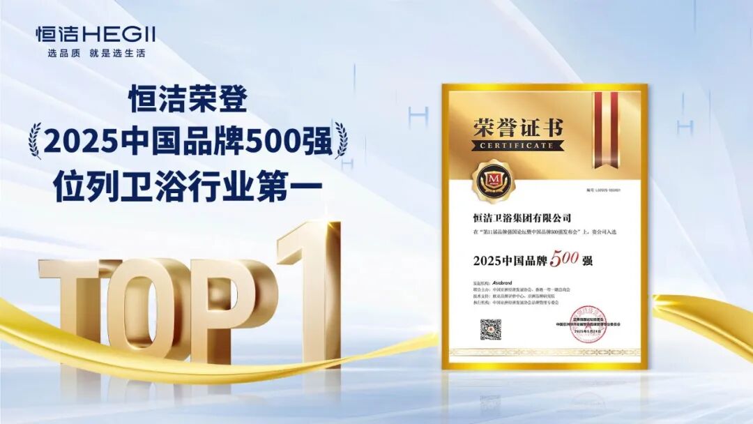 此次登顶 “2025中国品牌500强” 卫浴行业榜首,是市场与行业对恒洁长期价值创造能力的再度认可。展望未来,恒洁将坚守品牌使命,立足国人需求,持续推进协同创新,引领中国卫浴行业向智能化、绿色化、场景化方向迈进,为提升国民品质生活注入新的动力。