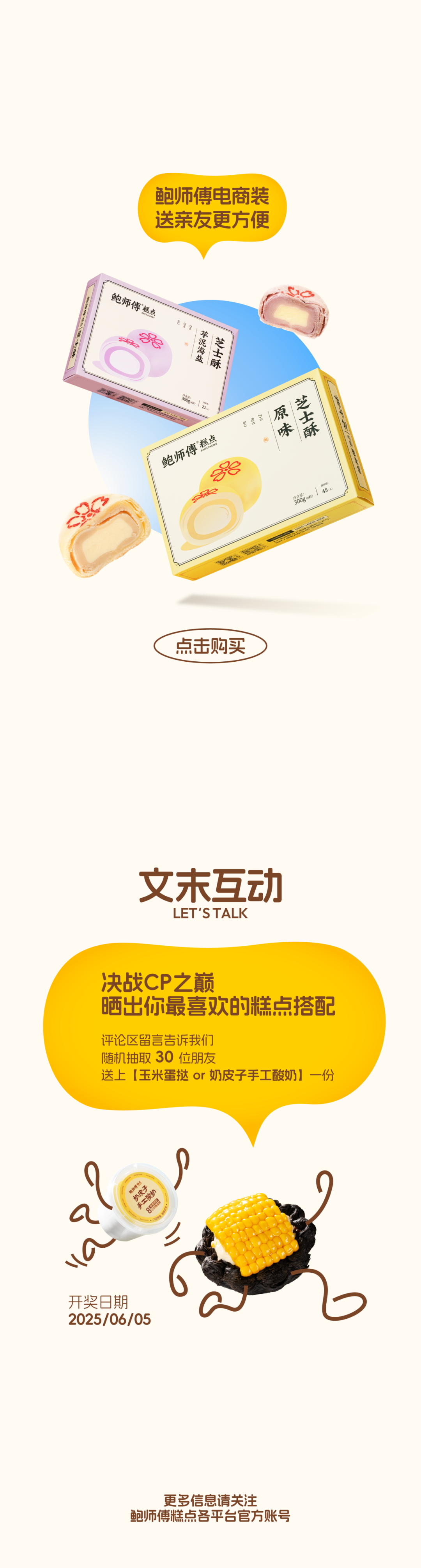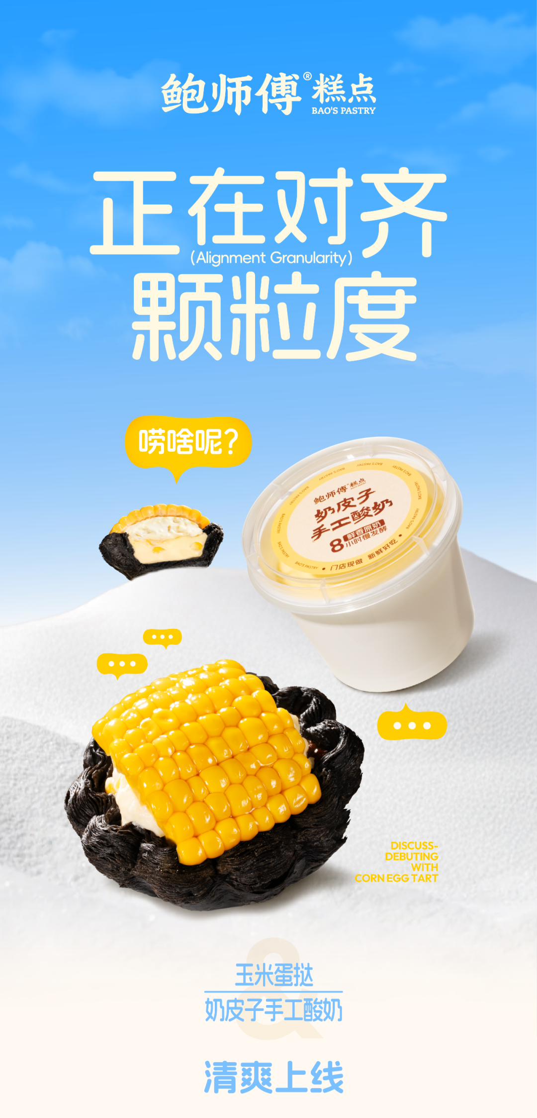 摘要:领「鲜」发布,自然香甜。鲍师傅玉米蛋挞、奶皮子手工酸奶全国上线
