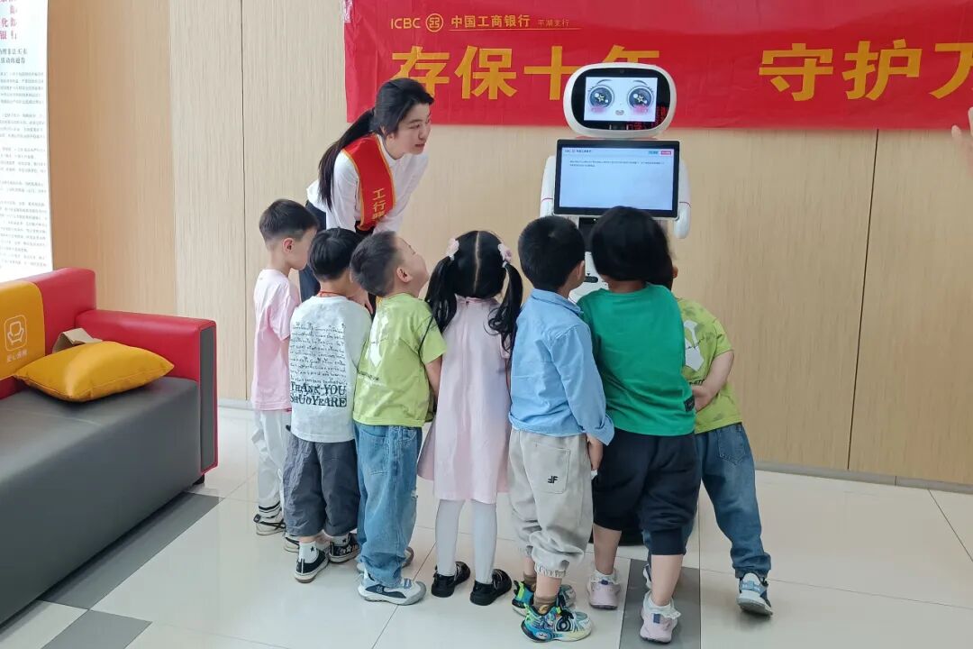 近日,工行浙江嘉兴平湖支行联合当湖街道中心幼儿园开展 “工行伴成长,童心向未来”活动,带领10位萌娃体验“小小银行家”。智能机器人“小艾”带领萌娃参观银行大厅,探索ATM机、叫号机等功能。“货币知识小课堂”上,工作人员用动画和道具教孩子辨认人民币、识别防伪特征,通过“存钱罐大作战”游戏,让孩子认识到金钱价值与储蓄意义。活动为孩子开启金融启蒙之路,实现“教育+金融”双向融合。
