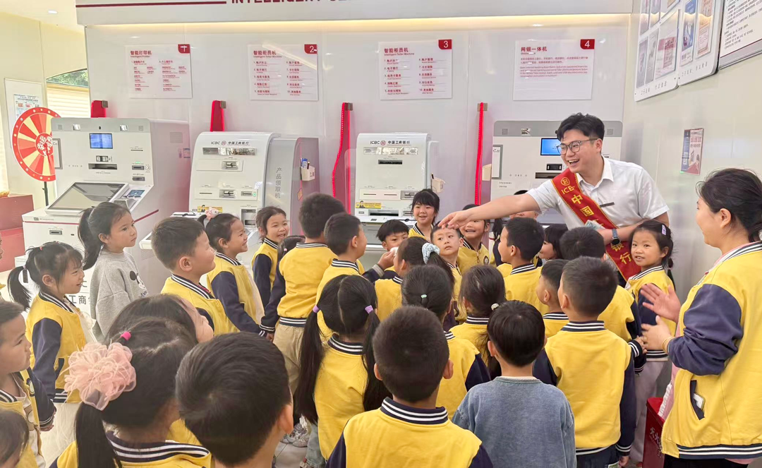 近日,工行湖南湘潭泗神庙支行举办“小小银行家”活动,邀请幼儿园小朋友走进银行。“金融导师”带领孩子们参观现金柜台、智能服务区,了解存取款流程与智能柜台功能,学习迎客礼仪。知识课堂上,孩子们聆听人民币文化故事,学习点钞技巧,提升金融素养。活动为孩子们播撒金融知识种子,传递正能量,助力健康成长。