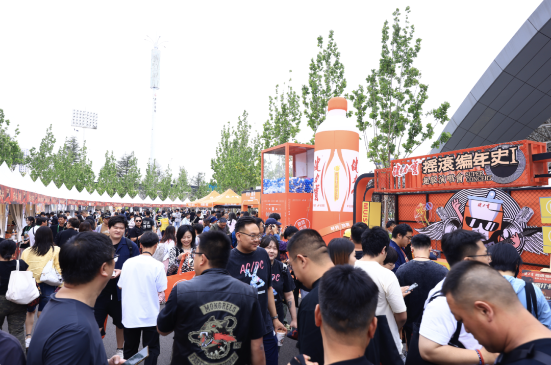 现场随处可见乐迷们高举着健力宝合唱现场,这款陪伴了国人40年的橙蜜汽水,这次成了最硬核的“摇滚周边”