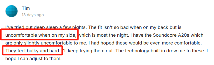 用户表示 For Me Buds 在侧躺情况