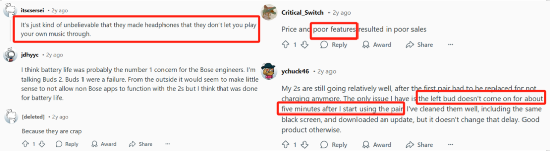 在 Bose 为什么停售 Sleepbuds 的问题下,不少用户直言其为“垃圾”,二代也有连接不顺利等问题,但确实较一代有所改进,也有人在期待新产品 | 图源 Reddit