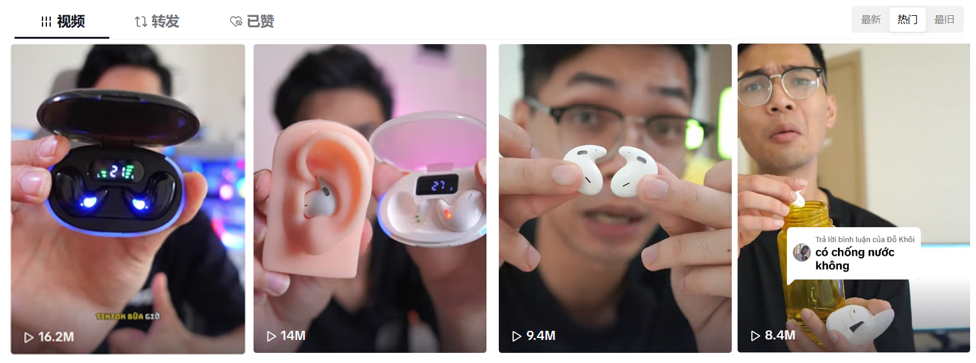 而 HQAi X55 卖爆背后的功臣,带货博主,则揭示了越南用户使用耳机的另一大痛点。