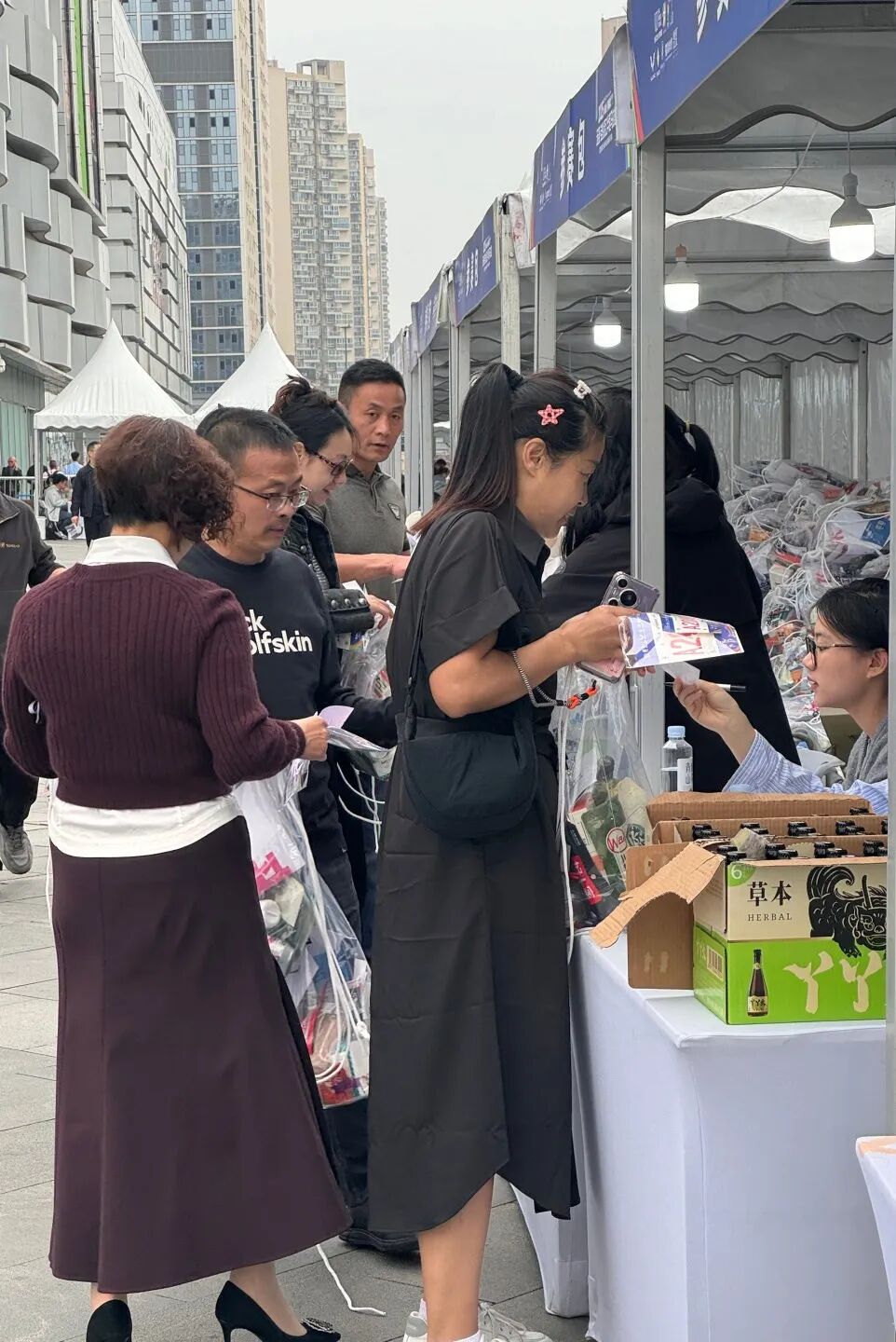 在领取现场,参赛选手携带身份证,用微信扫描二维码签到,提交体检报告纸质版后,打印领物小票,根据领物小票在对应窗口处领取号码布(芯片)、参赛包、参赛服等参赛物资。整个领物环节快速高效,准确有序。不少领完参赛物品的选手还在现场拍照,分享参加温江马拉松的满满期待。