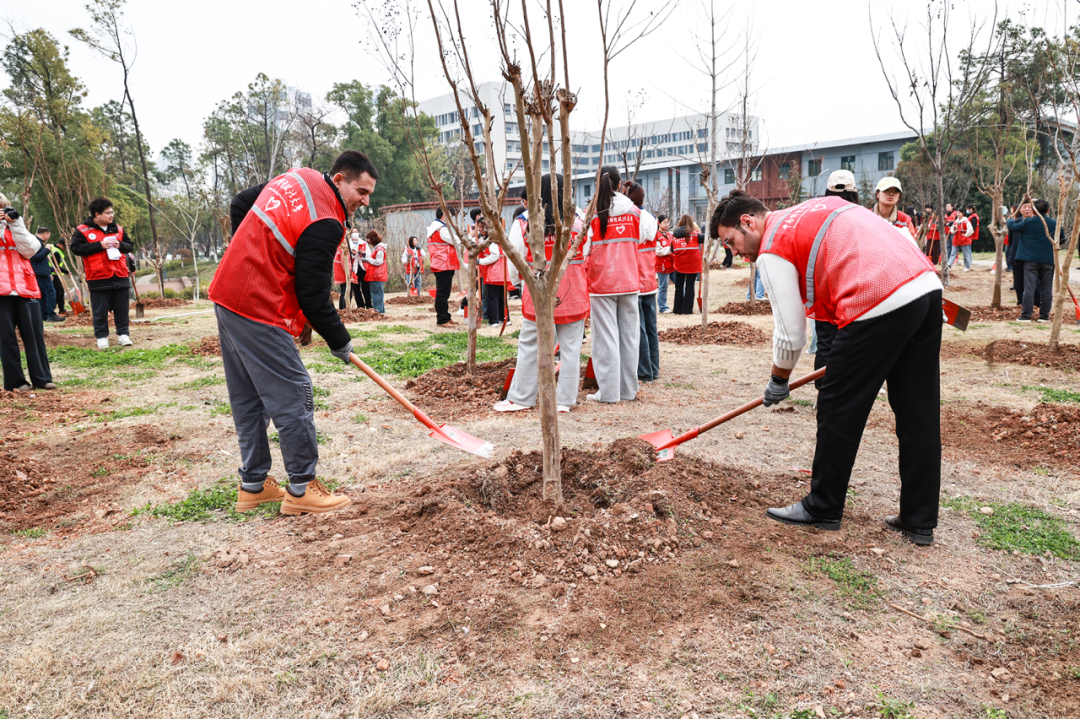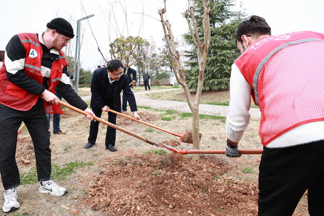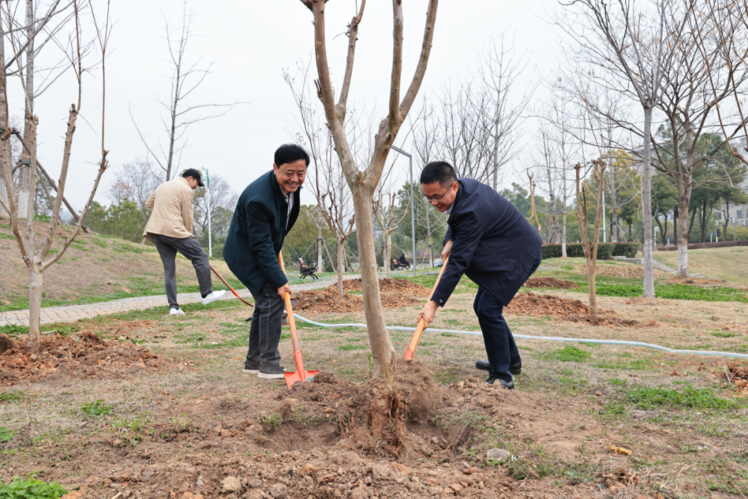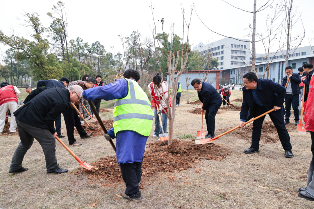 在第47个植树节之际,我校在南湖校区文涛楼绿地广场举办了植树节活动。校党委书记侯振发,党委副书记、纪委书记申祖武,党委常委、副校长陈柏峰和学校相关职能部门负责人、师生代表百余人共同参加活动。