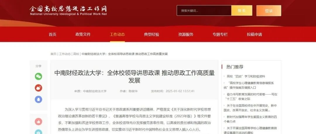 校领导带头讲!全国高校思政网报道我校思政工作高质量发展