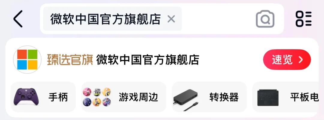 Step 1: 上天猫搜索“微软中国官方旗舰店”