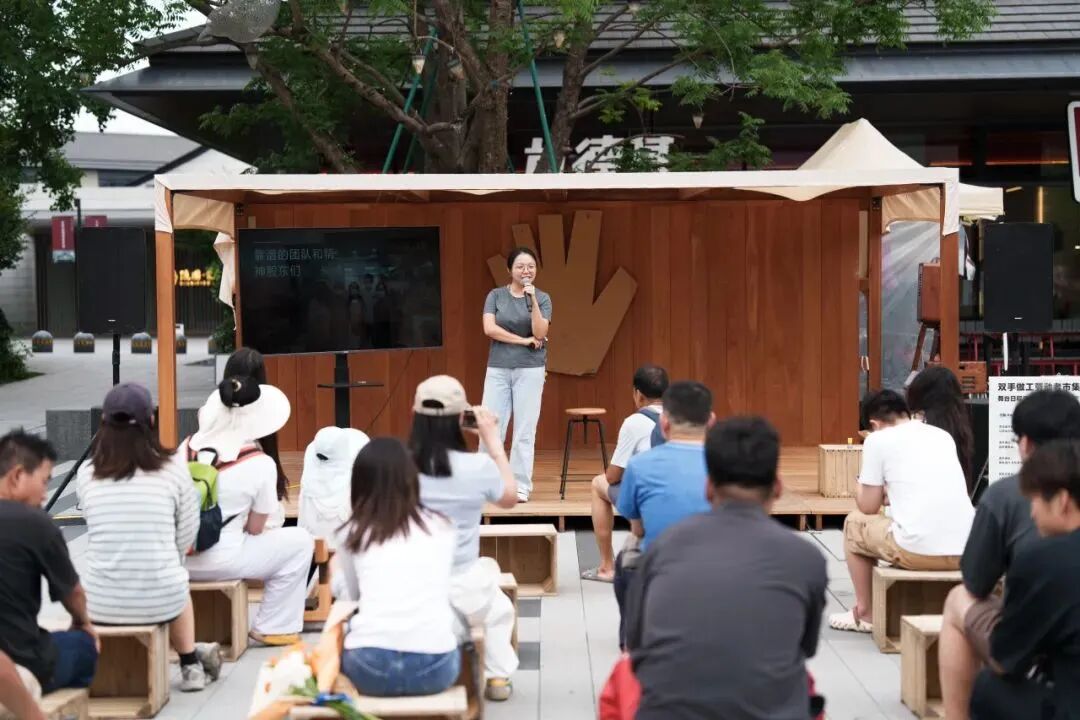 劳动者开放麦环节总是充满了真诚的力量。我们能感受到「ROHI」主理人媛 Yuan通过双手感受生命的律动,拥抱内心深处的自我;「麦歌烘焙」刀刀在良渚开店的快乐;「曲径SmallRoads」对民族手工艺文化的传承和保护;还有「啊草字头啊植研所」发起人芦芽分享她在良渚拍蘑菇的趣事。找到自己的乐趣所在,是一件很快乐的事。