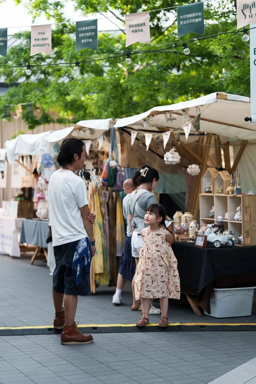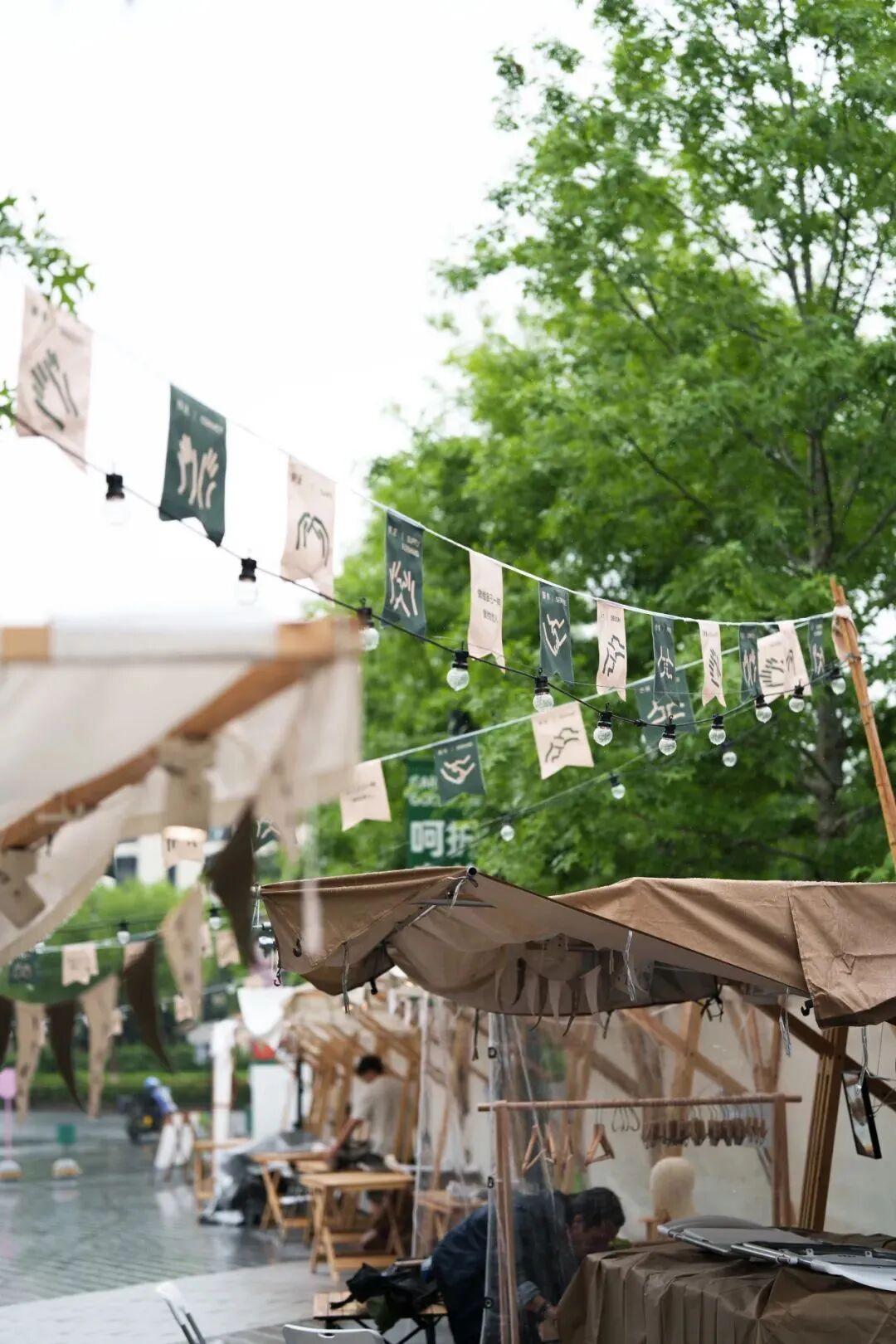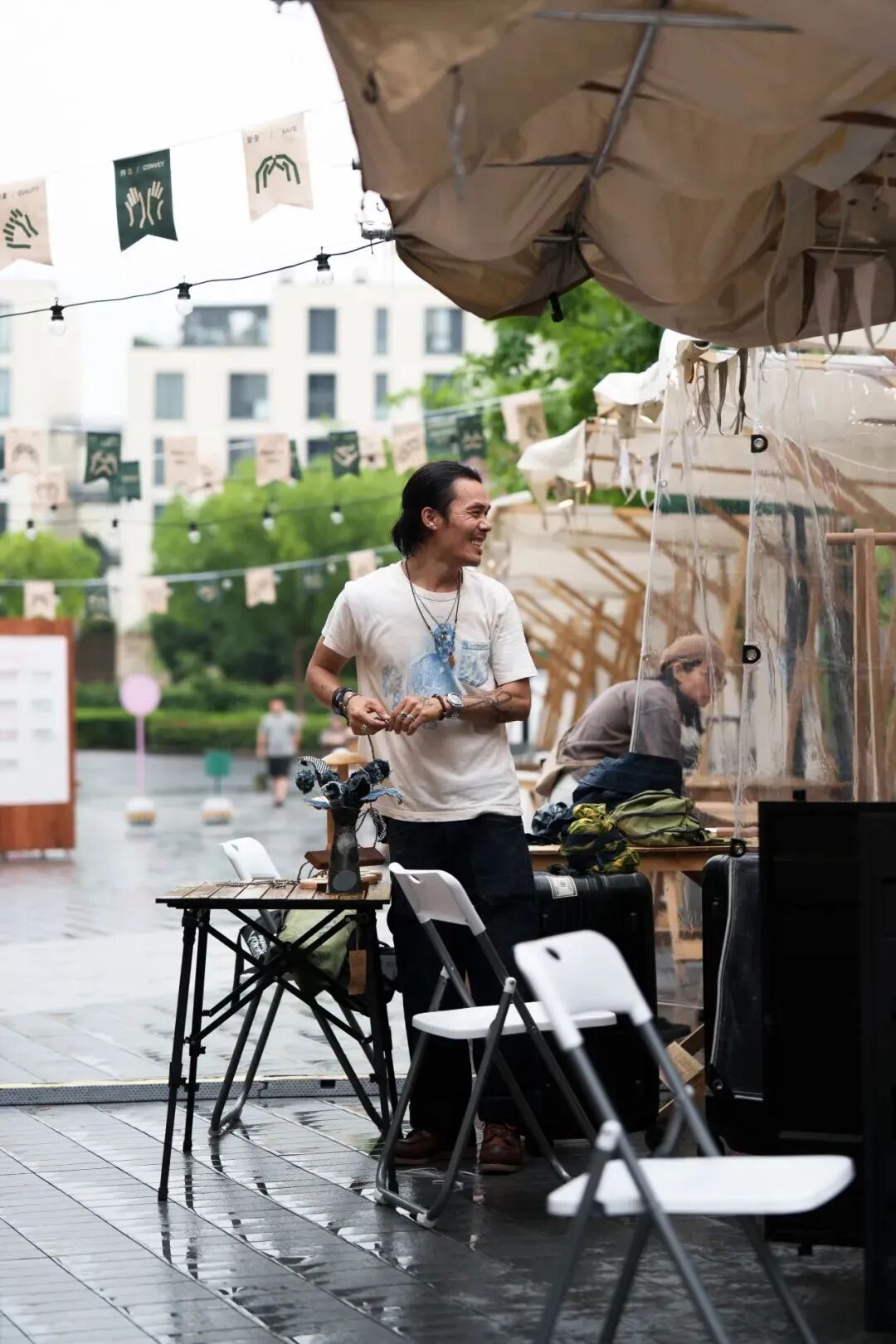 雨中的市集,有了不同于往日的记忆点,或许不够完美,却是当下最独特的呈现。撑着伞穿梭的人群,在摊位间漫步、停留、交谈,不同角色之间的温暖善意牵连起来,我们感受到很多真实的笑容、互助的温暖和专注的力量。