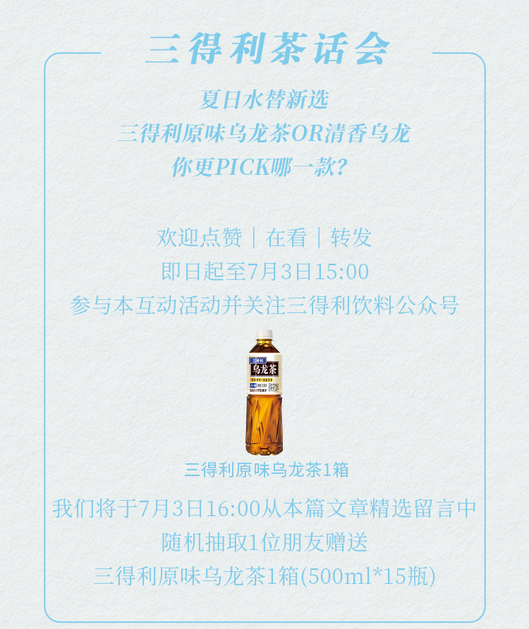 本文内容来源于公众号: 三得利饮料 ,请扫码查看原文。