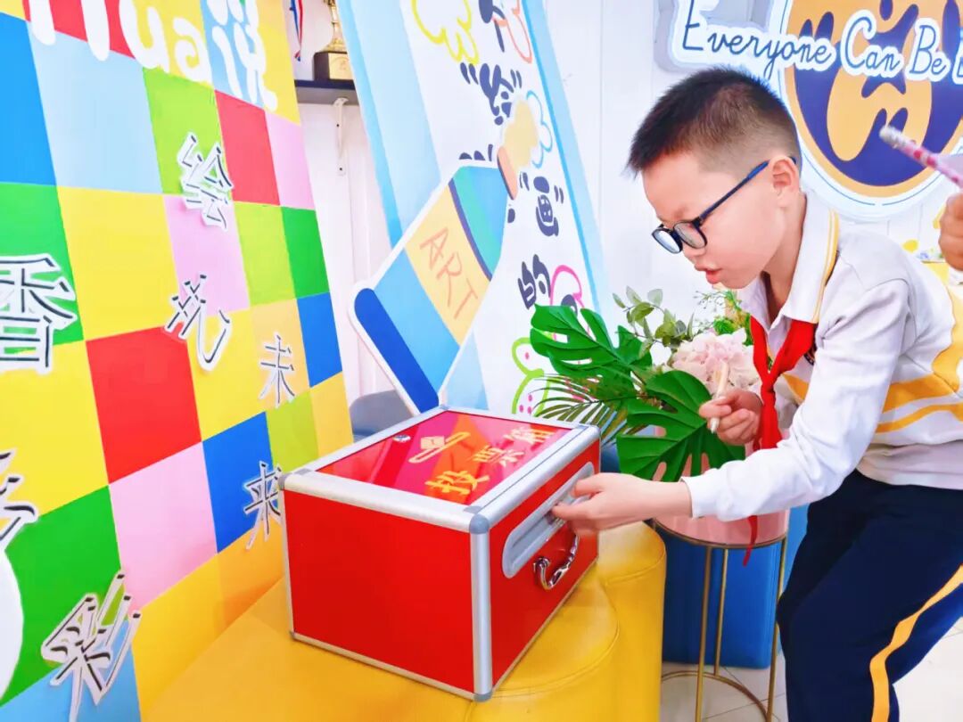 早晨,同学们步入校园,仿佛走进了一个童趣盎然的艺术世界。走廊上,彩旗随风舞蹈,风车向大家招着手,同学们兴高采烈地围在一起欣赏,欢声笑语回荡在校园的每一个角落。