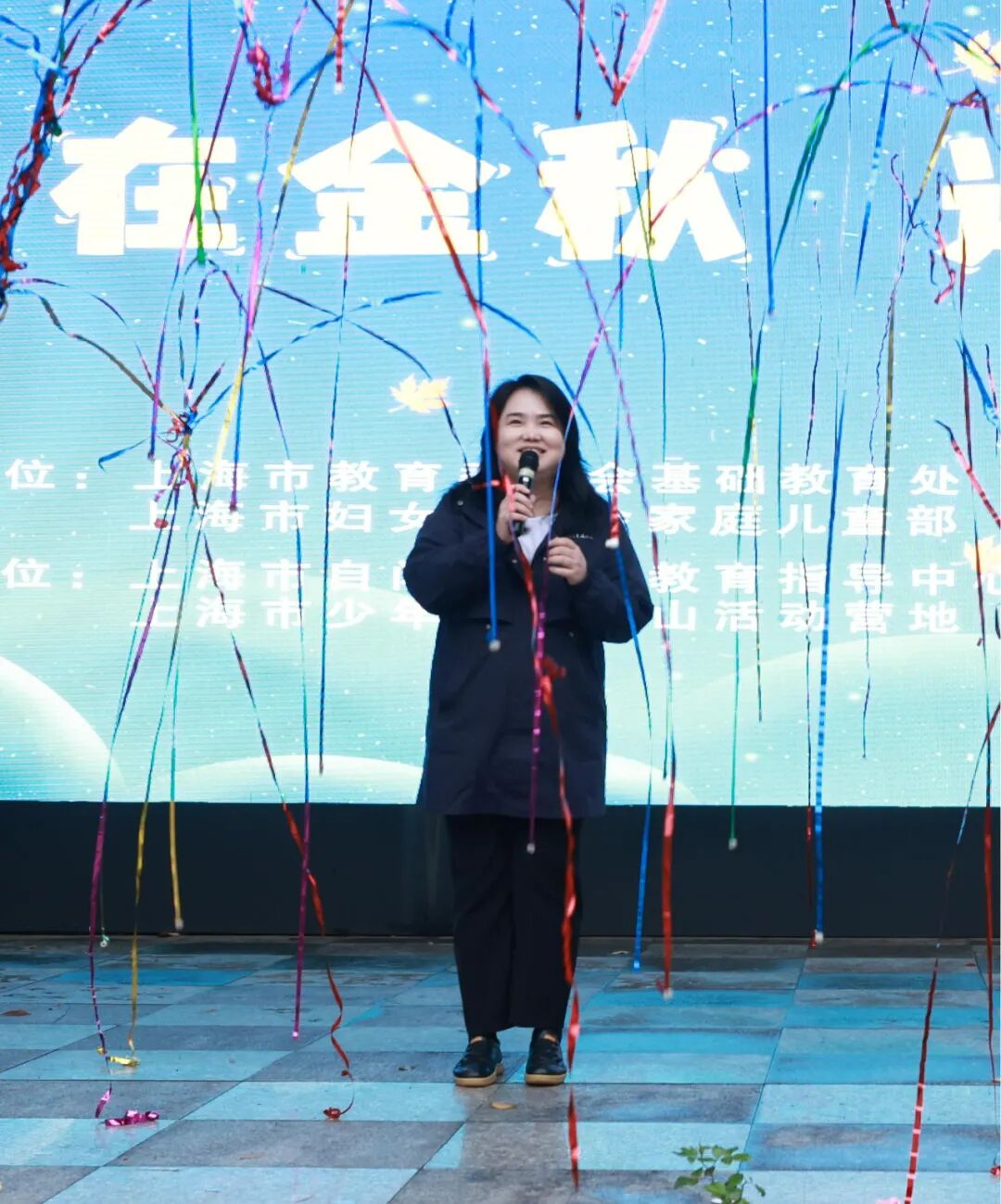 上海市少年儿童佘山活动营地主任陈芳捷致欢迎辞,上海市自闭症儿童教育指导中心分管负责人吴筱雅宣布活动启动。