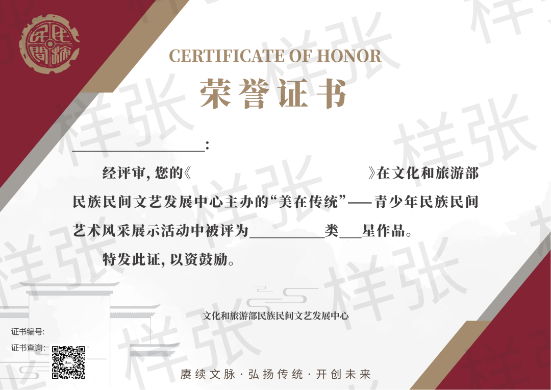 优秀选手将推荐参与“美在传统”青少年民族民间艺术风采总展示活动,并有机会荣获美在传统纪念证书与纪念品。