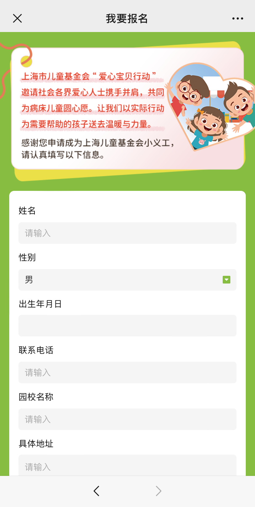长按识别上方二维码进入专区,点击“小义工申请”,仔细填写所需信息并提交。待后台审核通过后,我们的工作人员会尽快与您联系,协助您完成小义工注册。