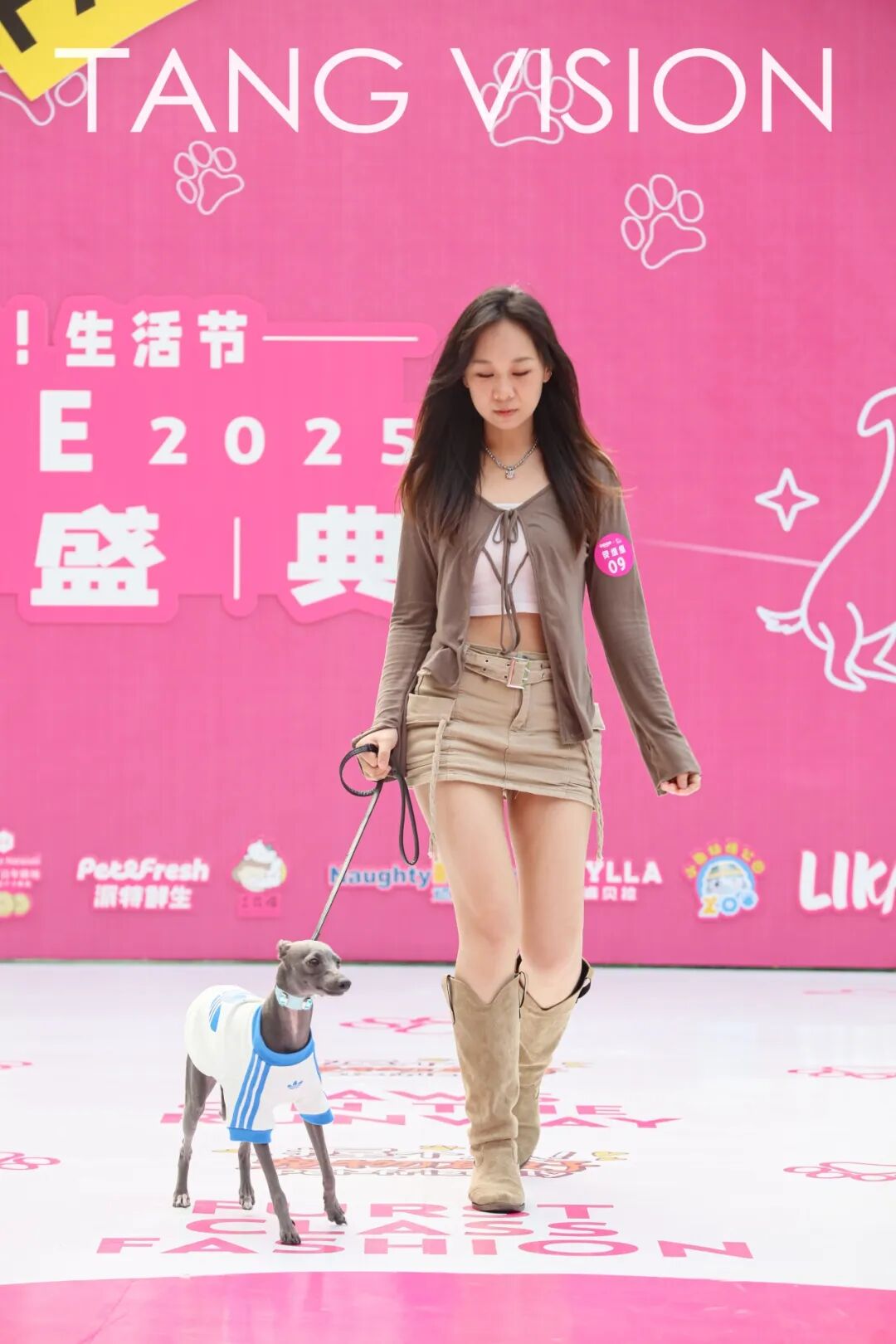牵着萌宠踏上T台