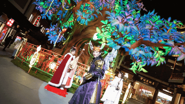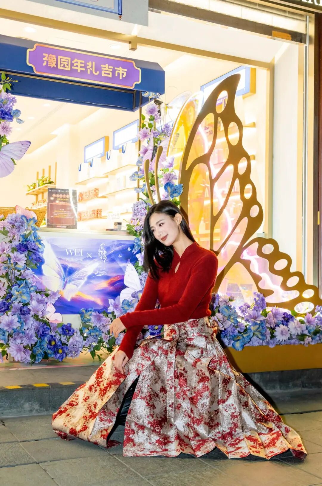 蝶影翩跹,花影与灯光交织成流动的诗意