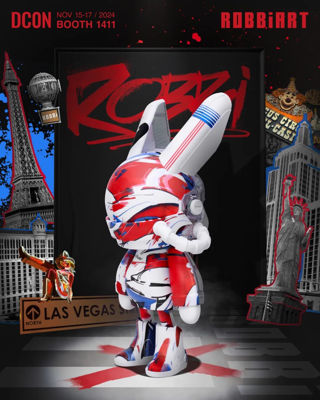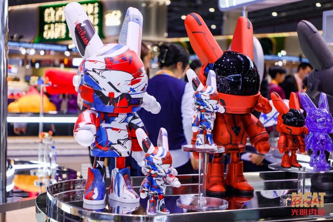 ROBBi作为潮流玩具界的知名IP,以自身为“灵感画卷”,将探索冒险创新精神与不同艺术风格融合,一直以其独特的设计和深刻的内涵深受消费者喜爱。本次进博会期间,ROBBi携与中国经典国民品牌大白兔携手推出的全新联名系列——「Cyber Sweet」,以及与新锐艺术家陈嫣冉共同打造的全新联名系列——「Ember」的新品亮相,以独树一帜的设计打造出潮流氛围,并通过互动体验让观众深刻感受跨界合作所带来的无限创意与可能性。