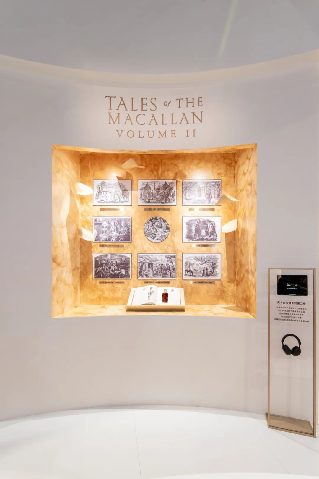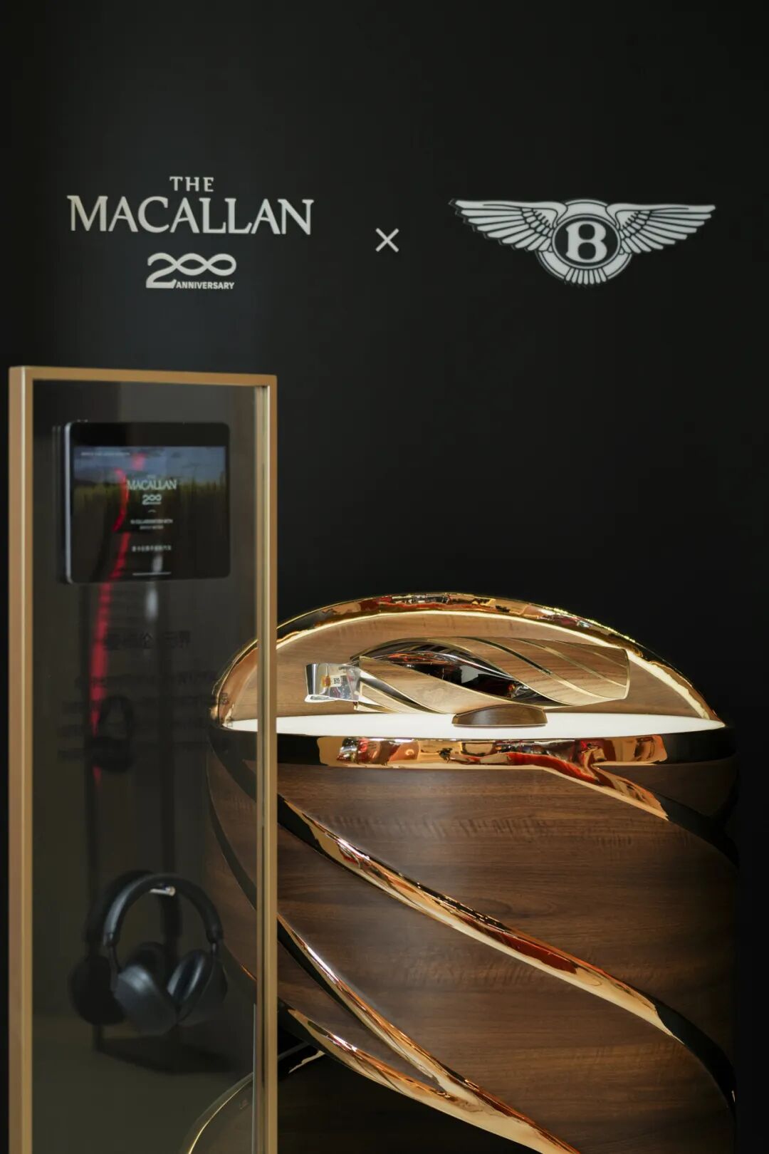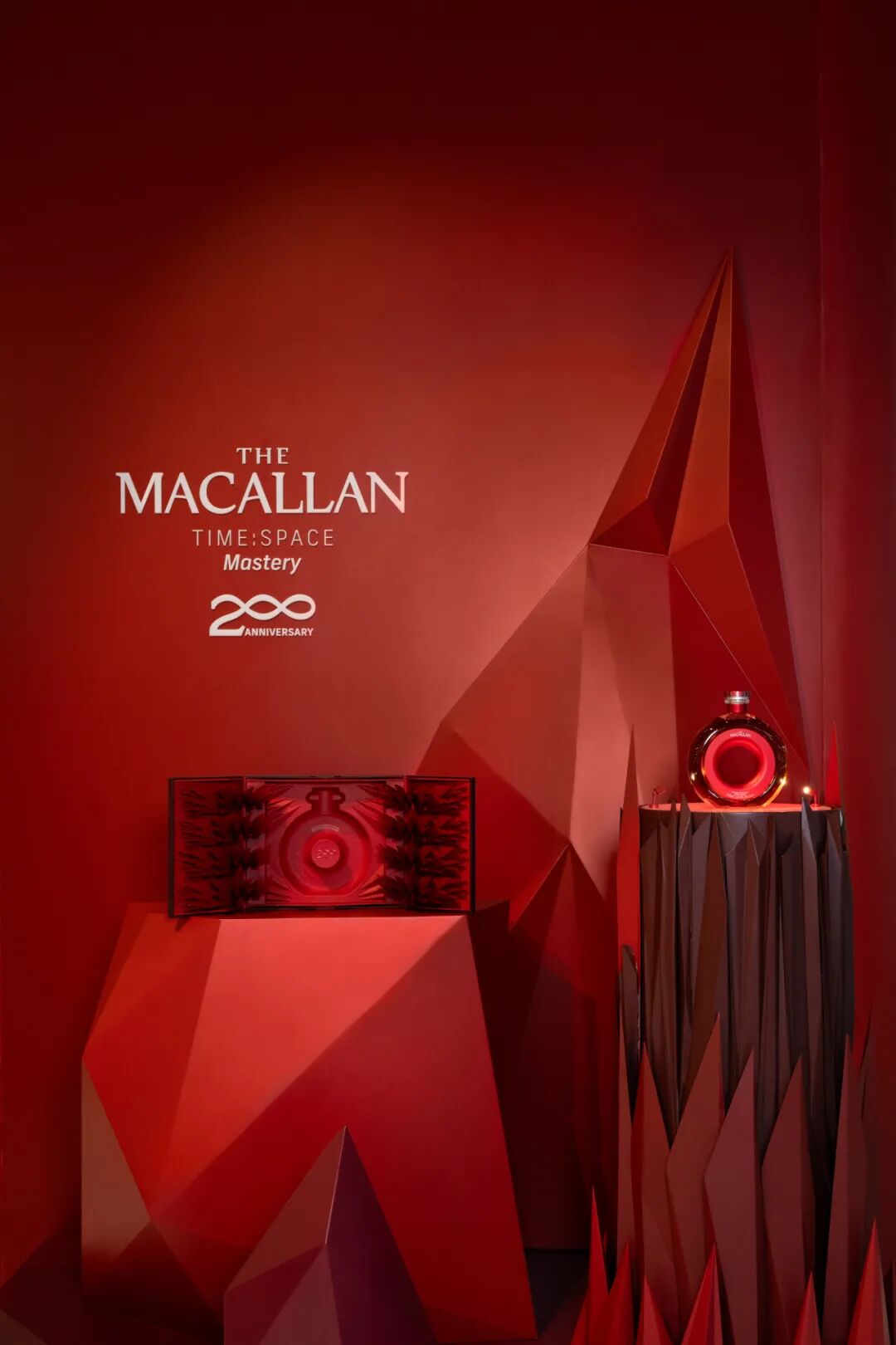 入口处6米高带有“自然锋芒”的红色山峰装置,重磅展陈了麦卡伦明日经典•200周年纪念款(TIME: SPACE Mastery)。这款威士忌精心甄选来自14种不同出众品质的橡木桶陈年酒液,塑造出层次丰富,风味醇厚的威士忌佳作,充分展现麦卡伦的精湛制酒技艺,向历代威士忌制酒大师致敬。酒液被盛装在集聚先锋技艺与古老匠艺的定制环形酒樽中,寓意生命的循环往复,以及从过去到未来的时光旅程,以此来礼赞品牌的百年传承与卓越匠心。