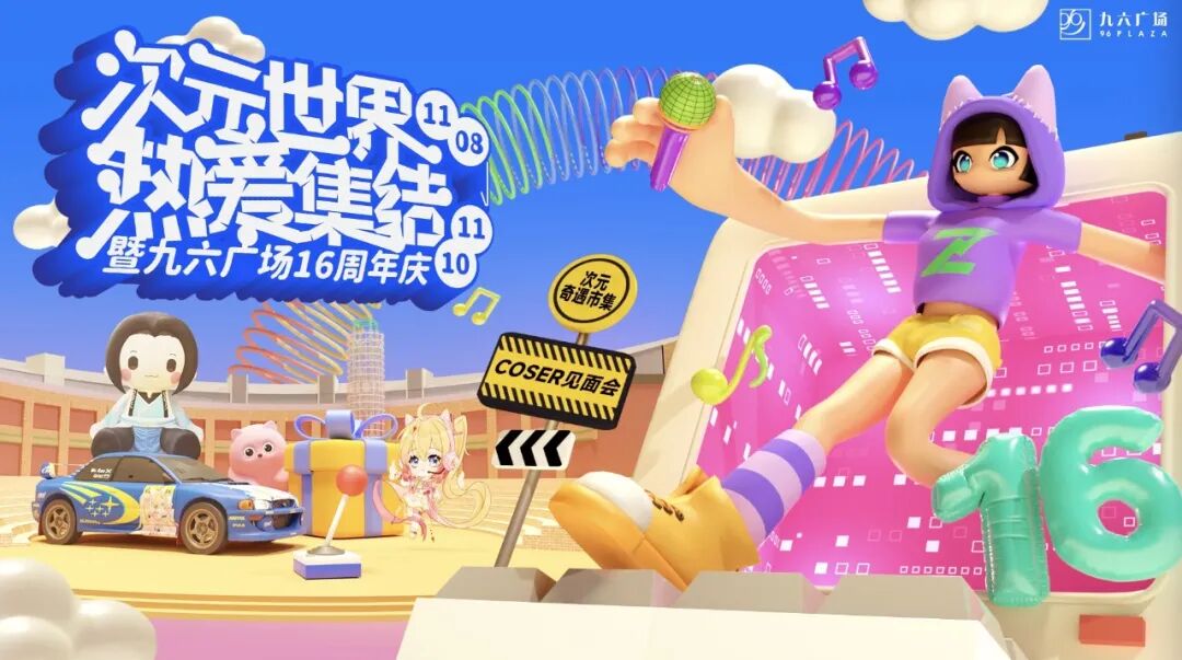 11月7日至11月16日,九六广场16周年庆典盛大来袭,充分释放“年轻力”,开启一场跨次元的奇妙之旅。周年庆期间,1500平方的二次元街区——AXG彩虹岛盛大开业!1F公区次元奇遇市集限时开放,融合20+次元品牌,超多授权IP周边精彩呈现,海量正版周边、手办等你来淘,超级赏,打卡集章,豪撒多重礼品!舞台精彩内容目不暇接,百万粉丝KOL现场签售、粉头一日店长、庆生仪式、微店随舞、偶像女团音乐会、原创青年音乐IP——城市绿洲音乐计划四周年晚会等内容,打造一场跨界融合的狂欢盛宴,让每一位参与者都能找到属于自己的那份热爱与激情!