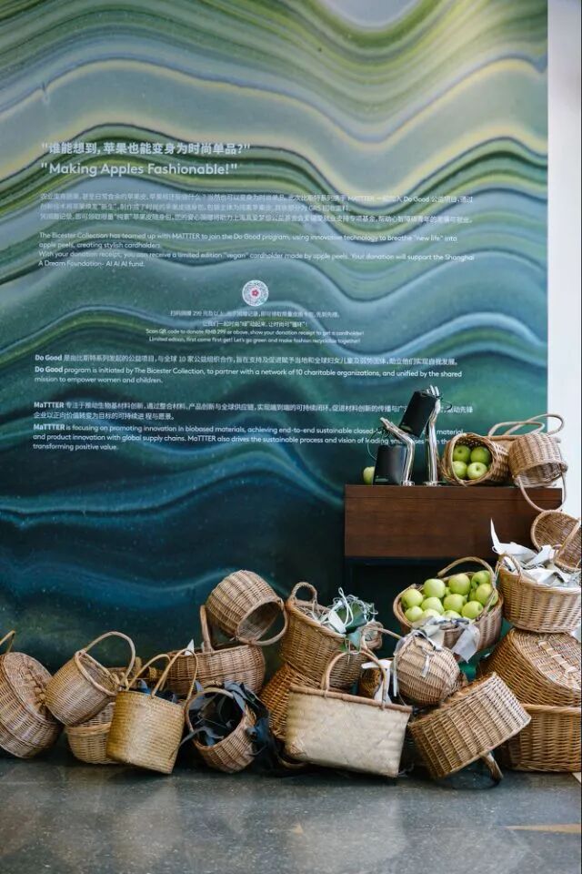还有机会在The Creative Spot快闪概念展上购买到一款限量版的随身包。这款随身包由可持续材料创新公司MaTTTER合作制作,其独特之处在于使用了苹果作为原材料。所有购买这款专属随身包的收益,将捐赠给比斯特上海购物村的DO GOOD公益合作伙伴——上海真爱梦想公益基金会爱碍爱就业支持专项基金,助力心智障碍青年的发展与就业。