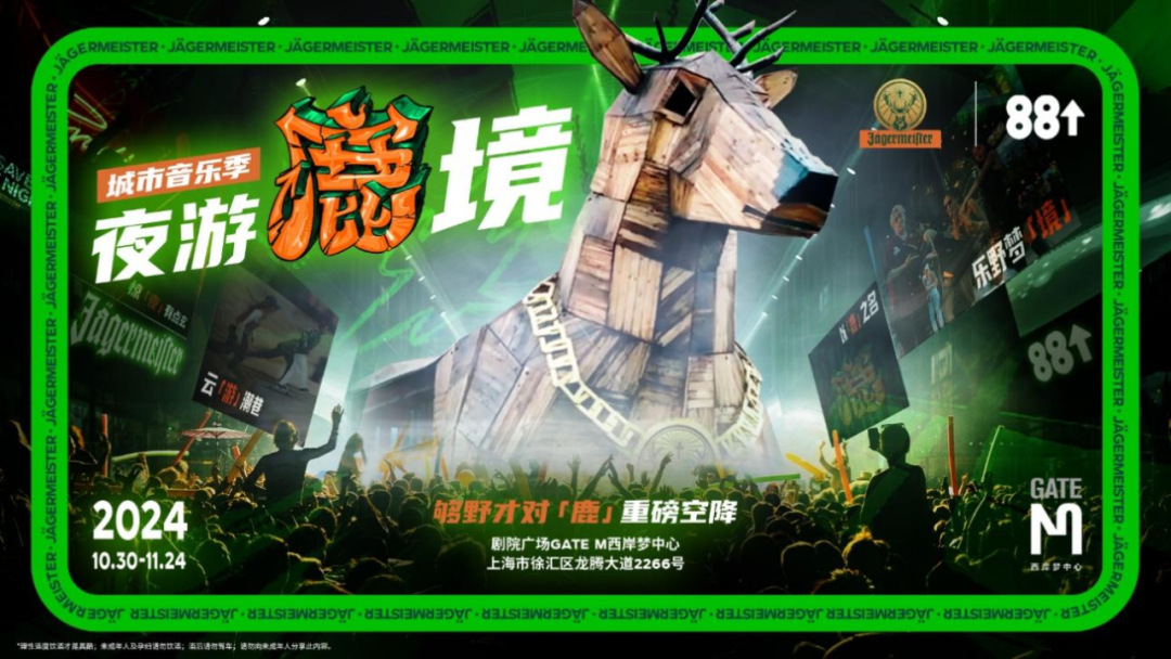 2024年10月30日,风靡欧洲各大音乐节的野格巨鹿在国内再次惊艳亮相,登陆野格X88rising「夜游鹿境」音乐季。为热爱音乐的年轻群体倾力打造为期一个月的超长体验,每周不同主题轮番上线。在新兴潮流街区上海GATE M西岸梦中心期待与您一同玩转野格无限可能,够野才对「鹿」!