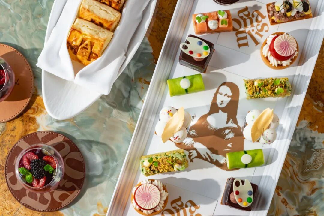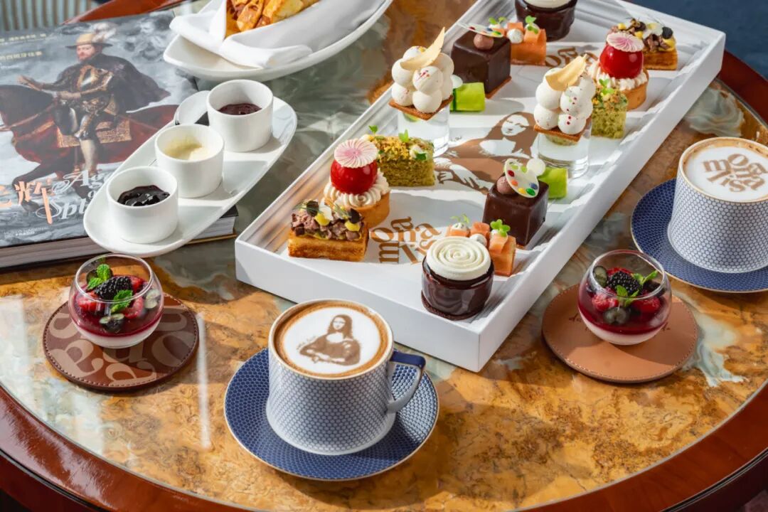 浦东丽思卡尔顿酒店的烹饪团队发挥创意,从展览中的经典名画汲取灵感,将艺术与美食巧妙结合,呈现富有艺术感的下午茶。以聚焦单元:普拉多的《蒙娜丽莎》为灵感的下午茶托盘设计和咖啡拉花,趣味地表达了这幅自十七世纪被纳入馆藏起便颇受追捧的作品独特的魅力。