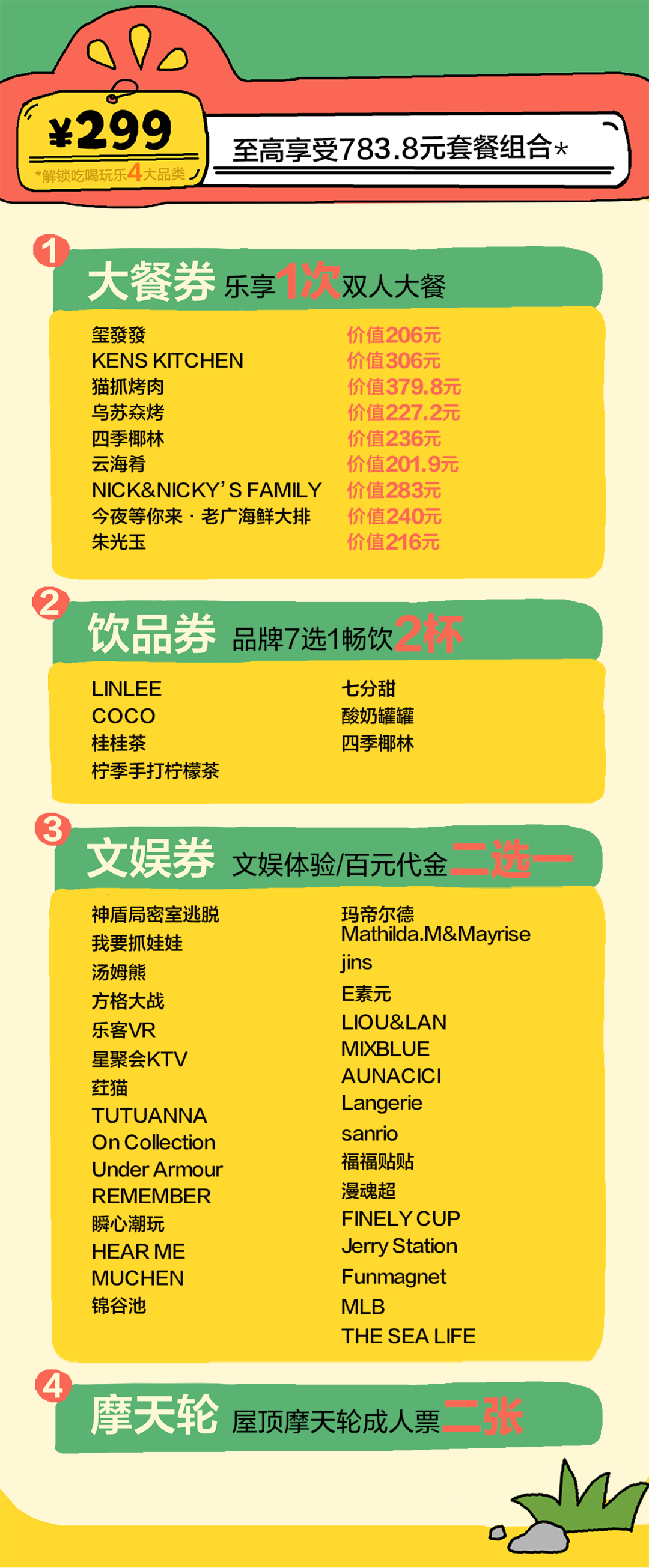 双人套餐1,388人民币包含两杯哈罗德干型香槟或两杯限定特调鸡尾酒,所有价格按人民币计算,且需加收10%服务费。