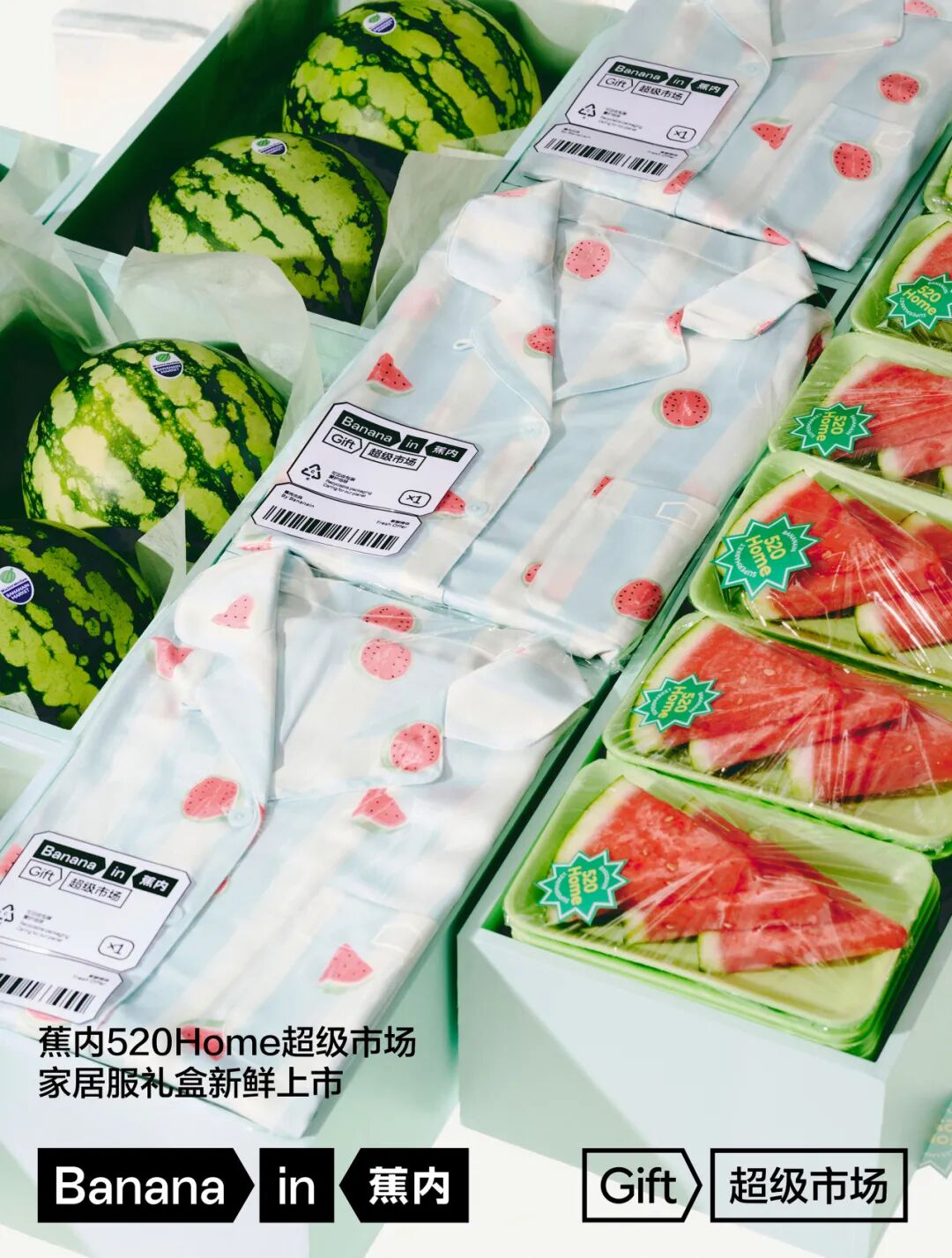520就快到了,蕉内在这个特殊的日子,推出520限定超级市场家居服礼盒,携手盒马鲜生,于5月11日至5月26日期间,在上海龙之梦黑标店、深圳罗湖万象食家店精心打造了一场别开生面的"520超级市场"活动。