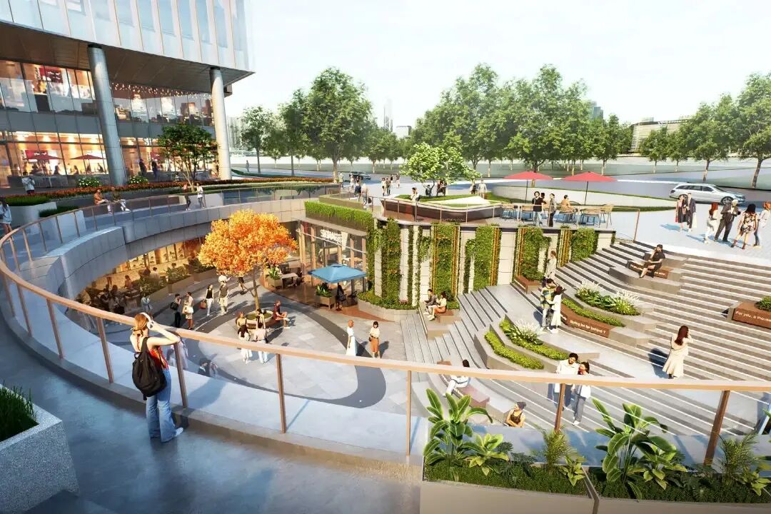 改造后的商场,将从原来的“封闭式盒子”变成叠加开放与绿色空间的“公园”。空中连廊串联莘庄站、天荟商业体、莘庄公园,新增南北下沉广场,增加外摆位,与莘城公园一起打造宠物友好空间。预计今年第三季度竣工。