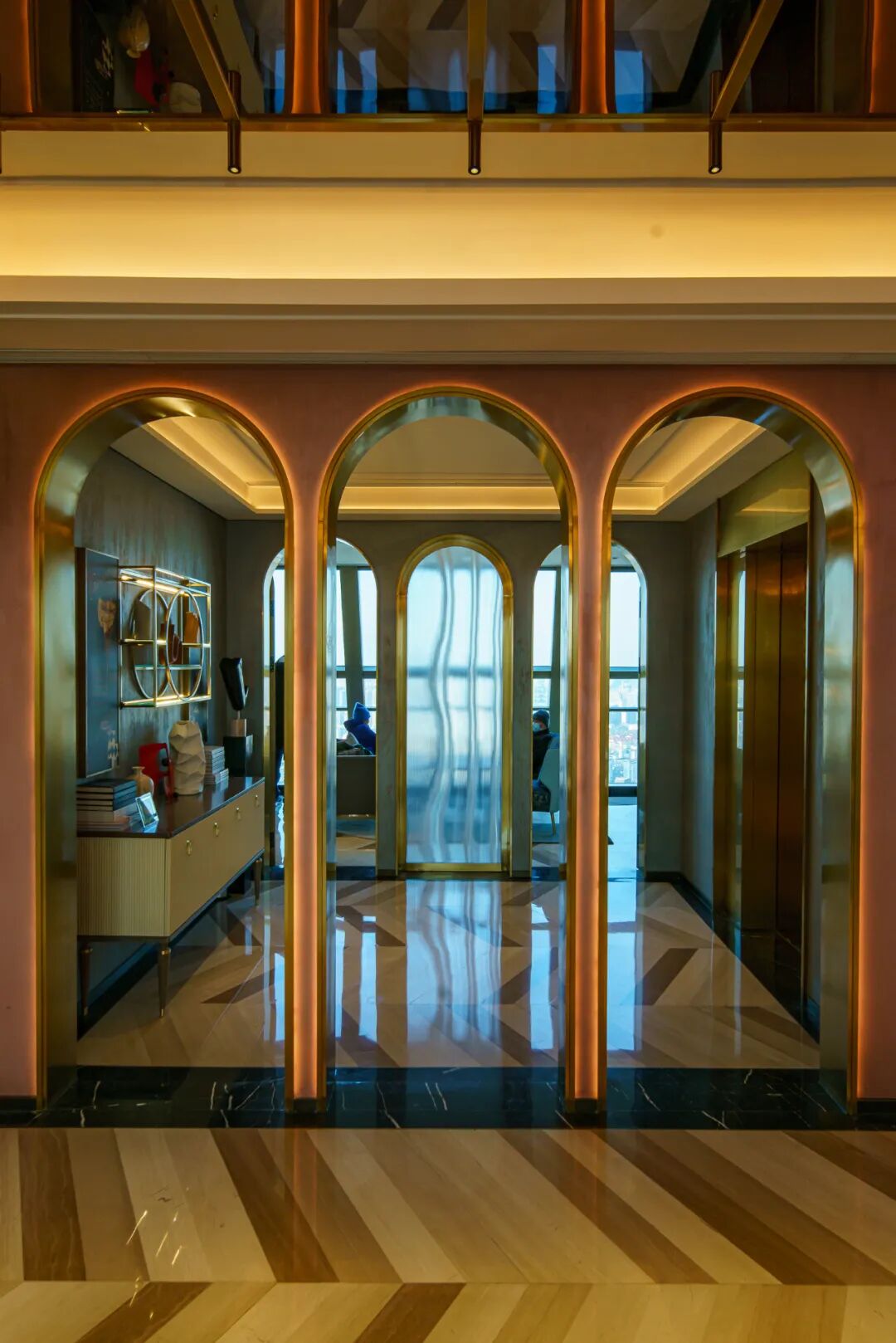 52层室外部分设有廊亭,靠中间室内部分设有休息区,环境很是雅致。