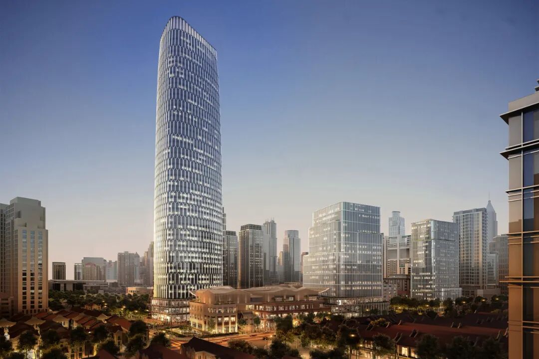 上海华润中心,与140多年历史上海最大的石库门建筑群张园仅一路之隔,曾创下2019年上海商办土地单价最高记录,是南京西路核心区20多年来不可多得的钻石级地块。