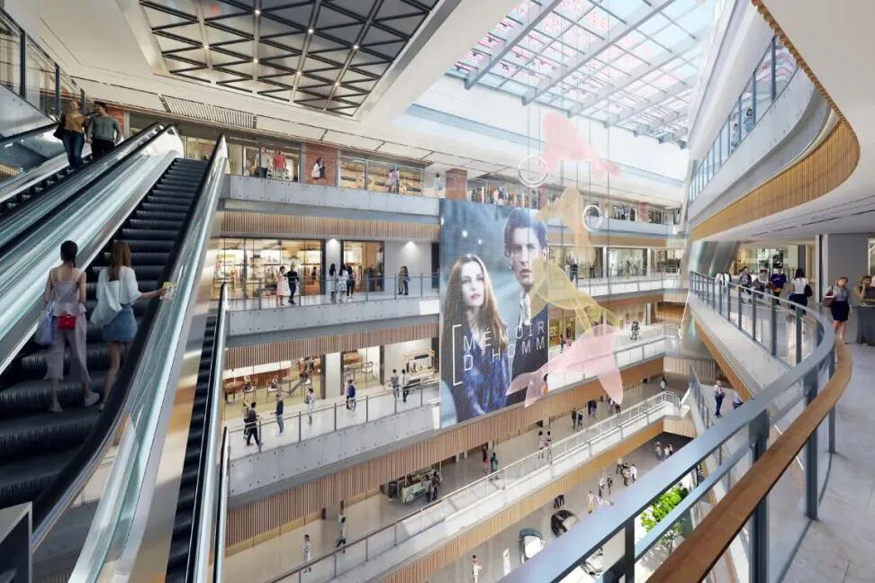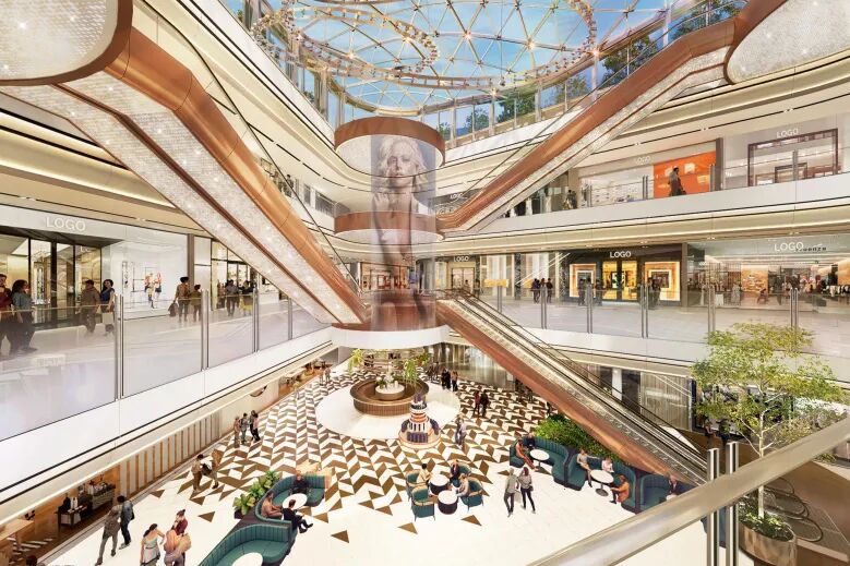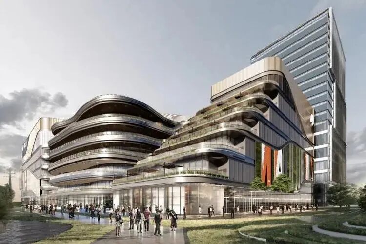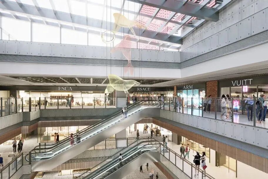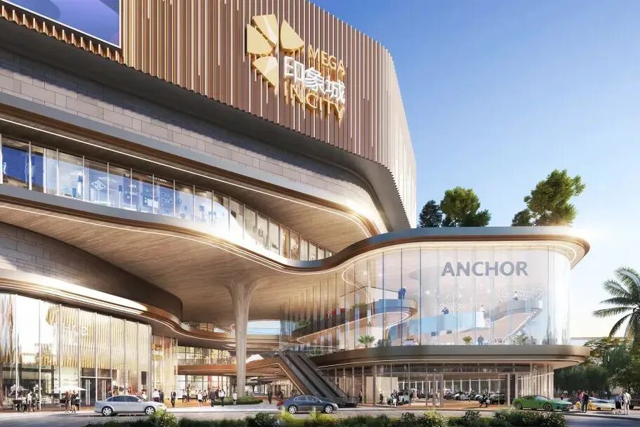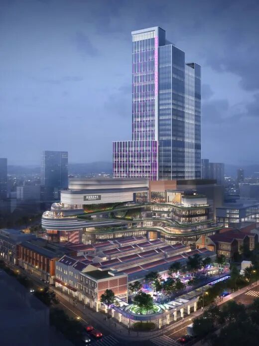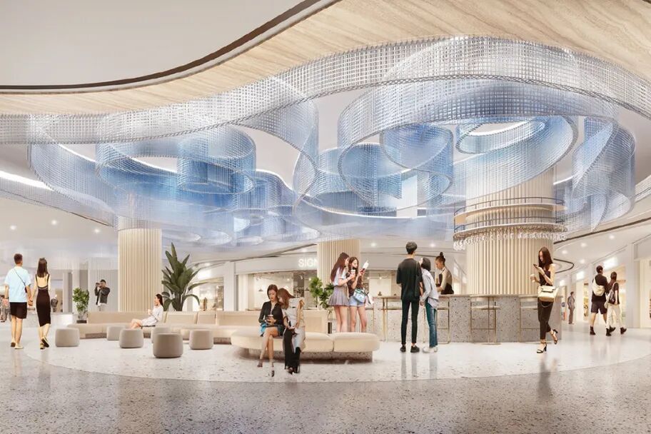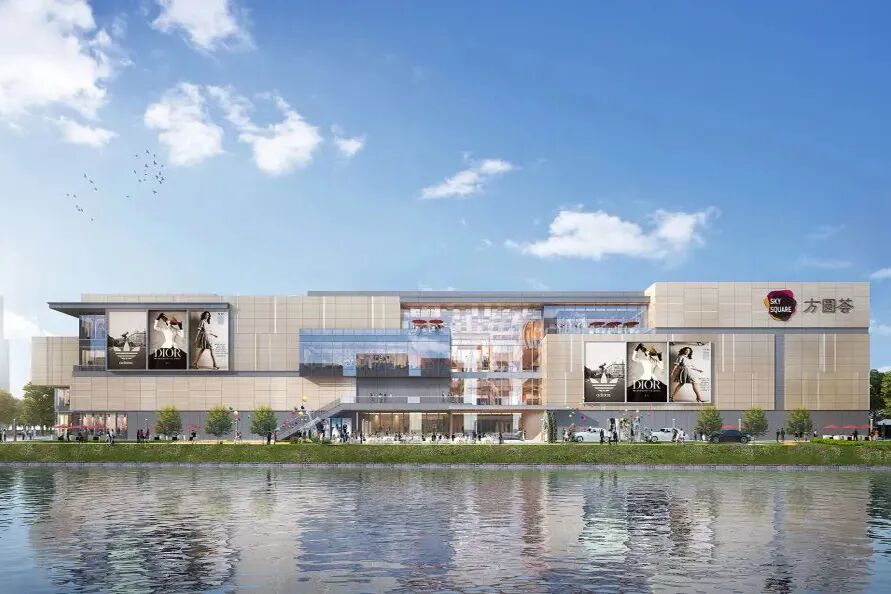 商场建筑形态曲线流畅,室内装修以及景观一体化设计,集文化、时尚、建筑、商业、饮食和自然生态于一体,计划2025年年底开业。