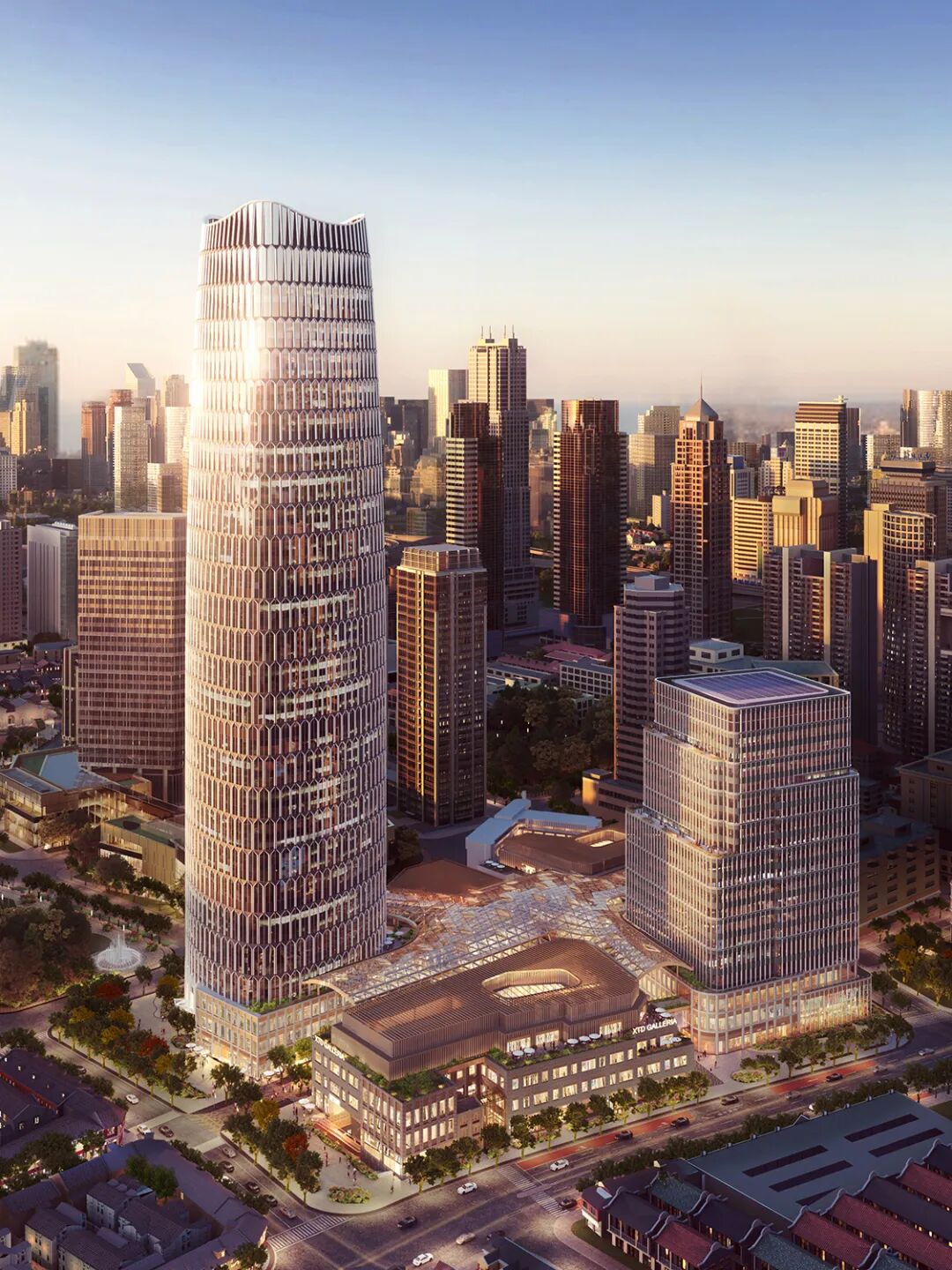 项目定位为“中心之上,再造中心”,总建筑面积约13万㎡,地下4层,地上塔楼38层,集办公、商业、文化等为一体。