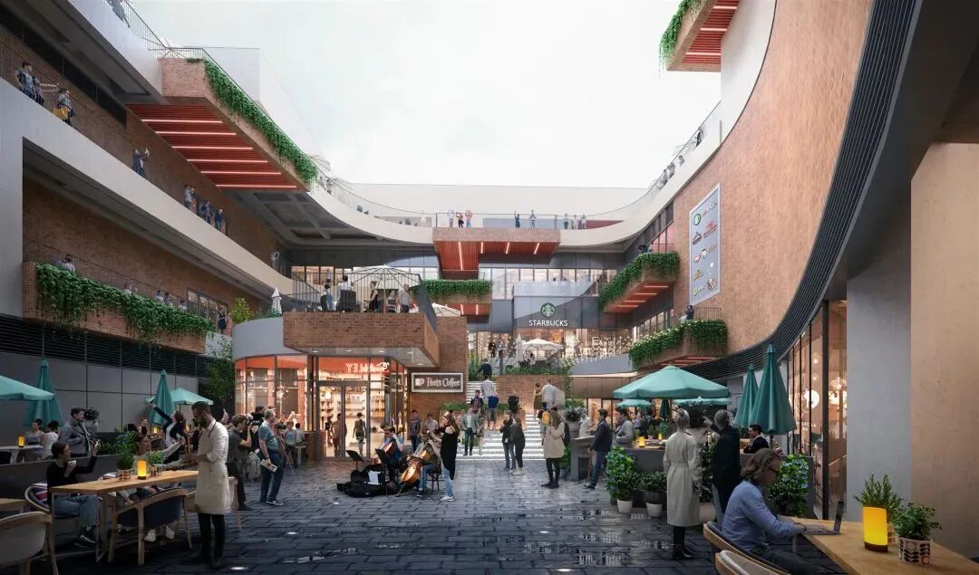 其中,商业部分约8.8万㎡,计划引进260家店铺,包含特效影院、复合型书店、全天候餐饮娱乐酒吧及室内娱乐体验中心等业态。