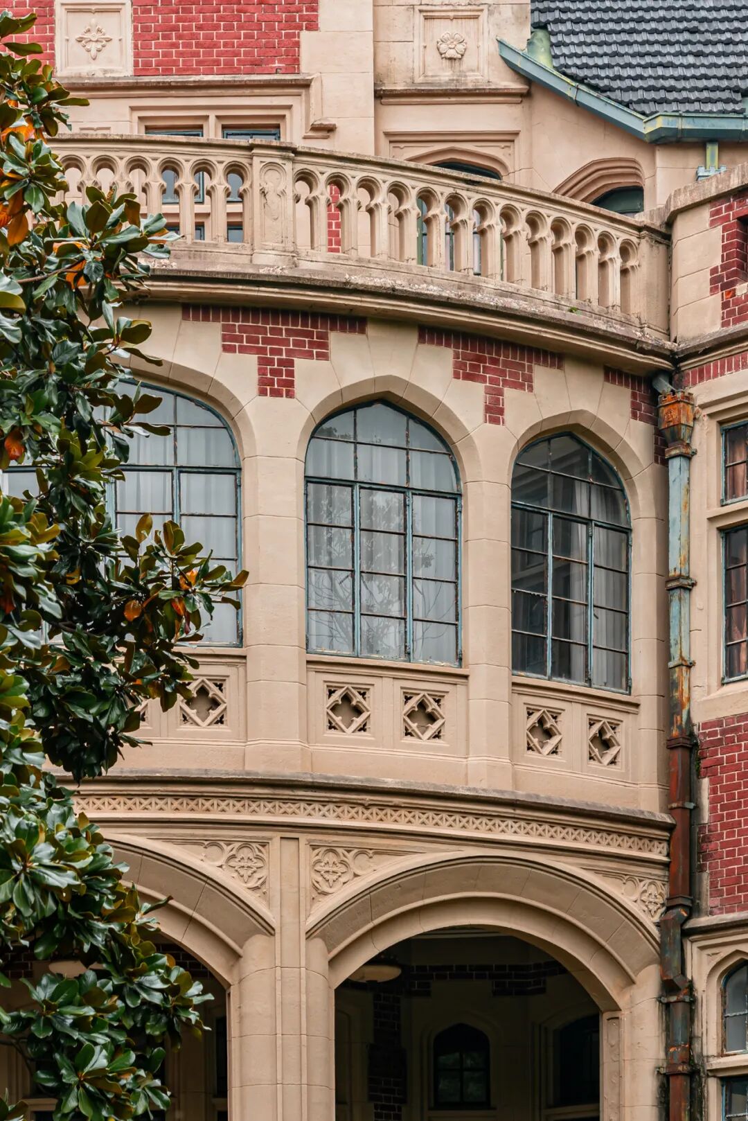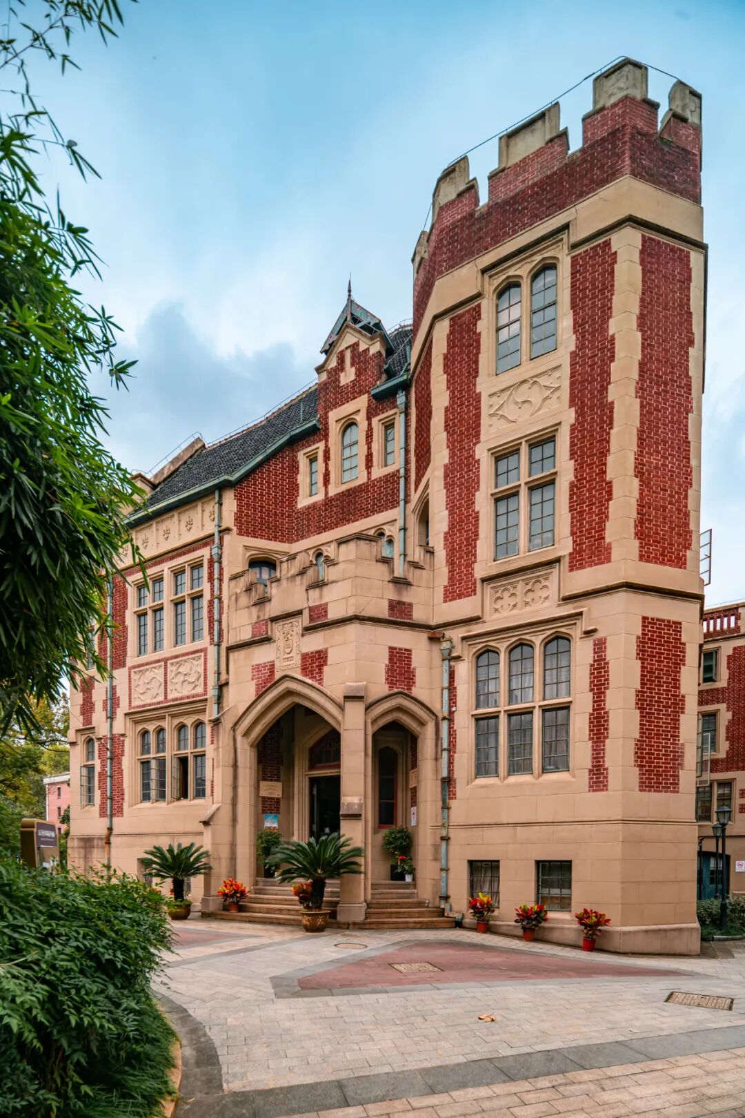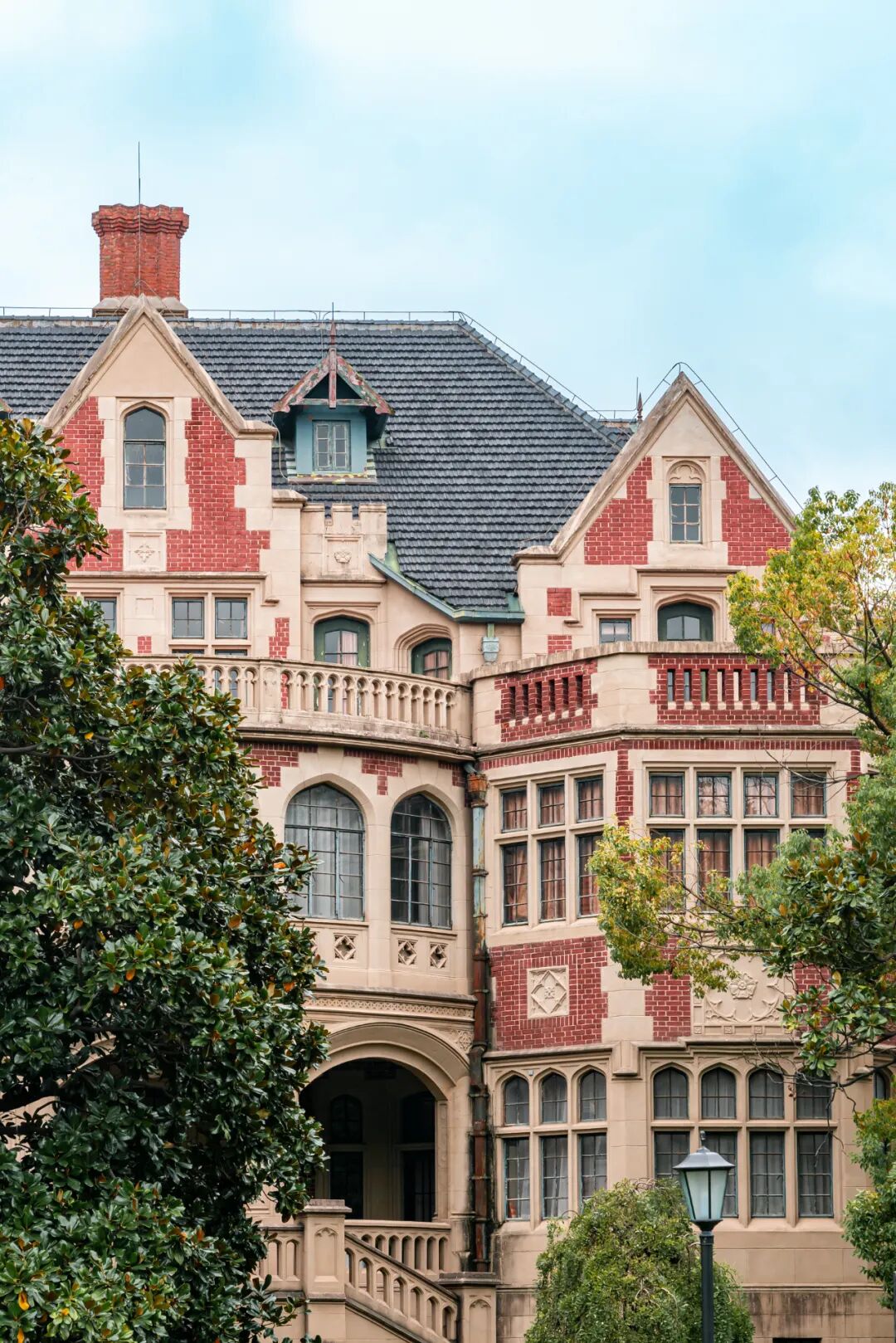 主楼分中、东、西三部分,从形式上来说属英国维多利亚时代英国哥特风格,北立面及两侧看上去就是经典的欧洲城堡样式。