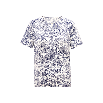 米灰底蓝墨色枝叶疏落蔓延