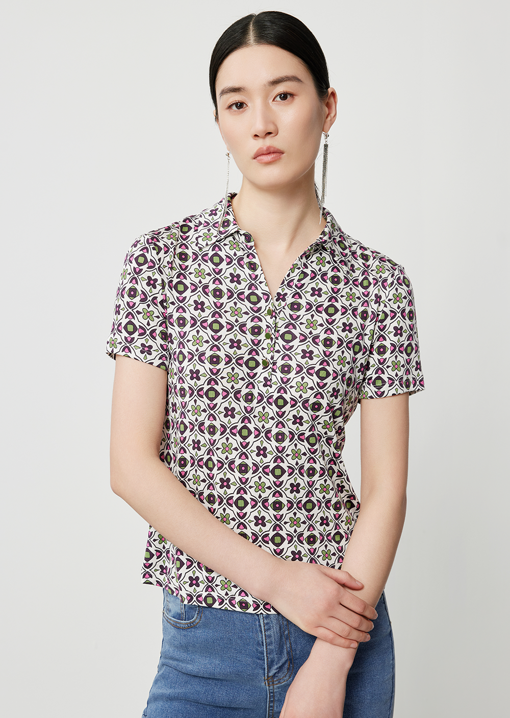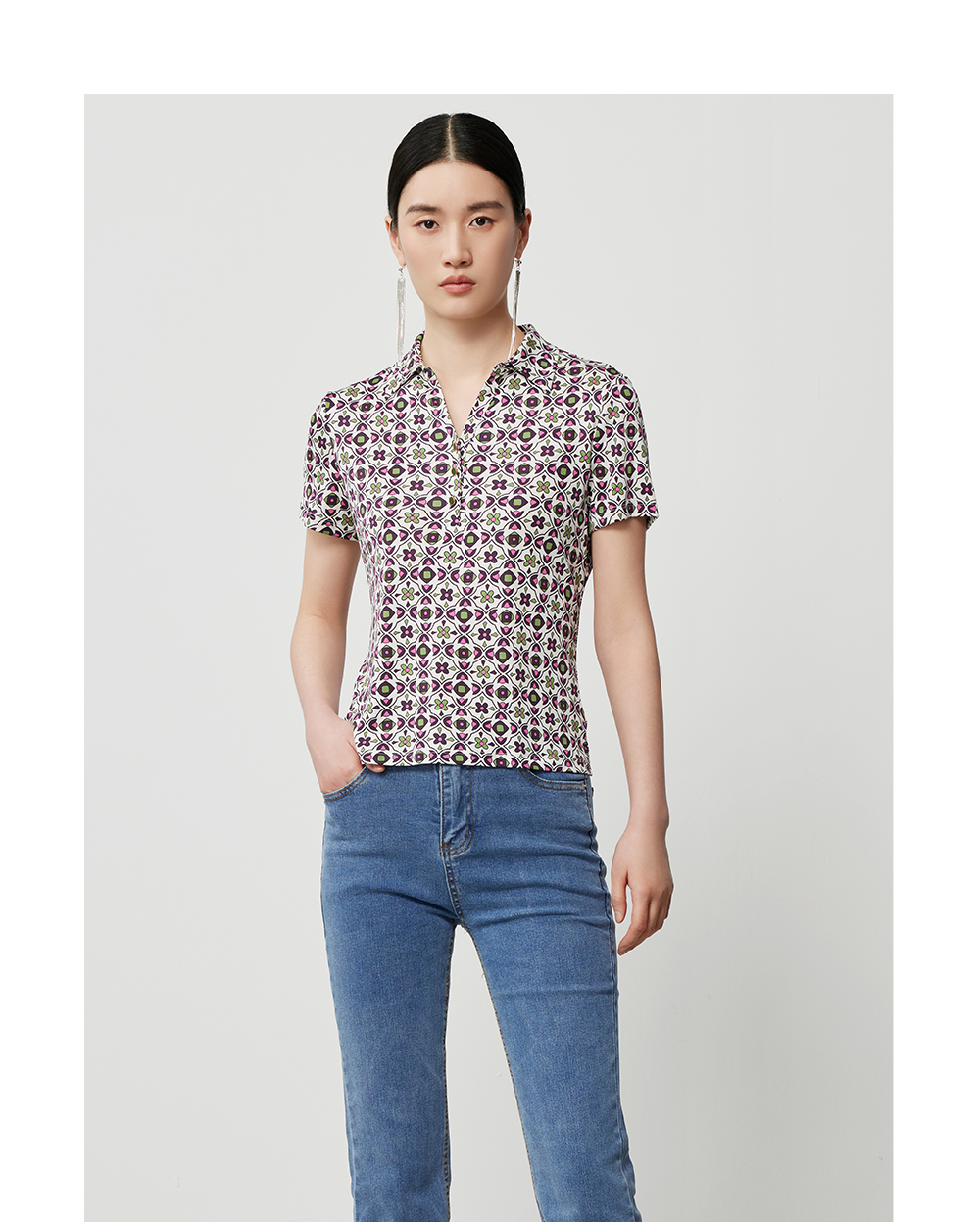 小V领恰到好处地延展脖颈空间