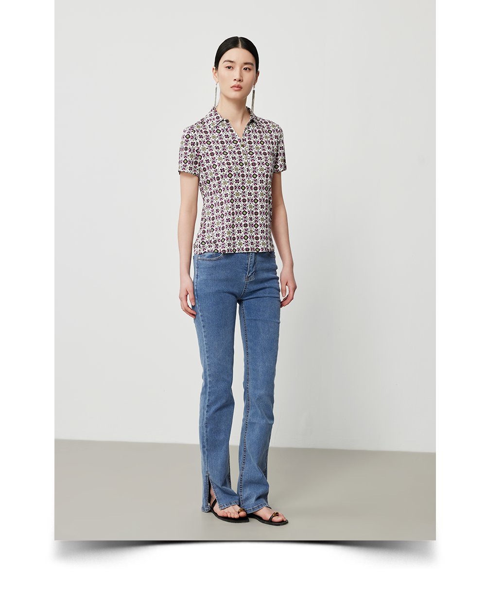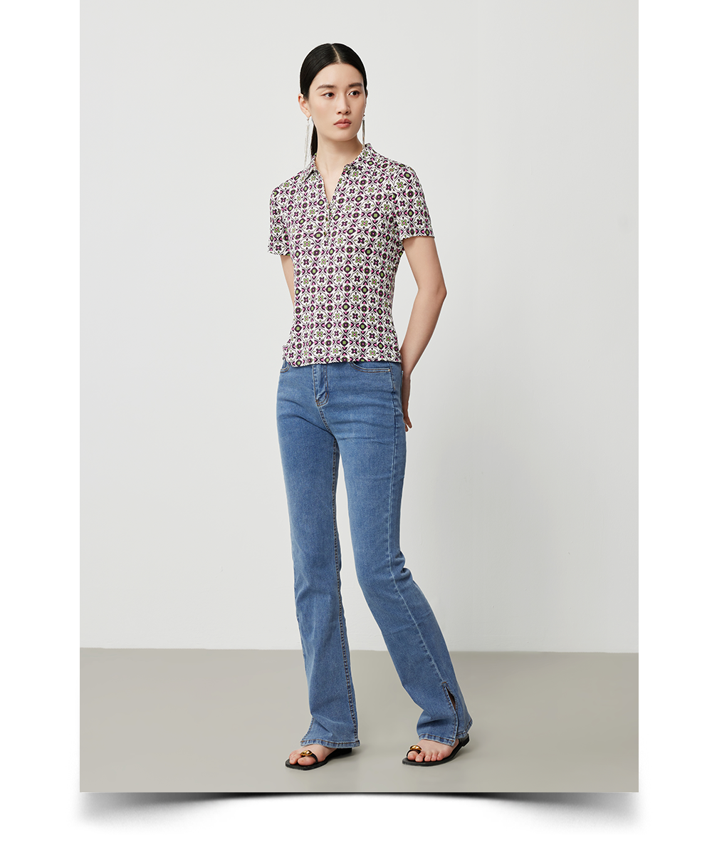 搭配小开叉牛仔裤