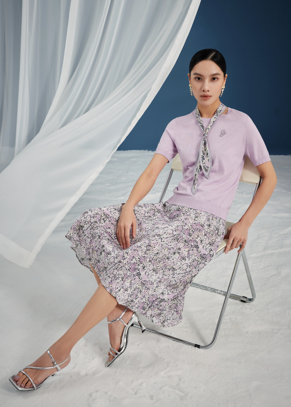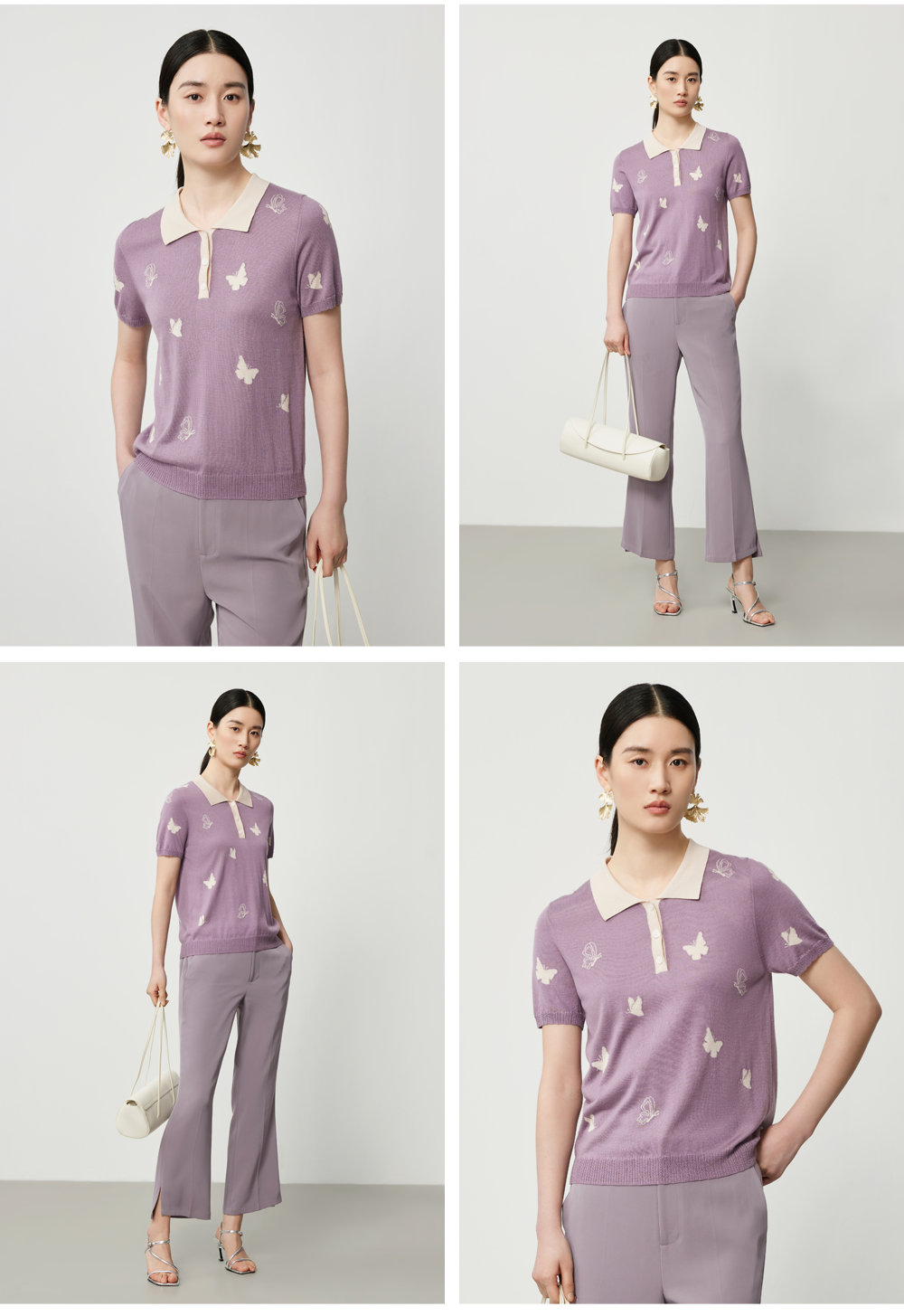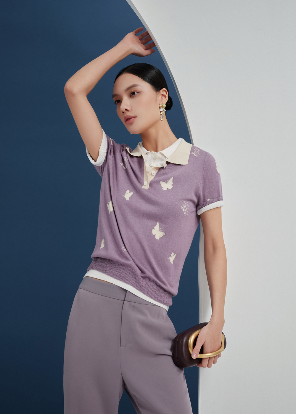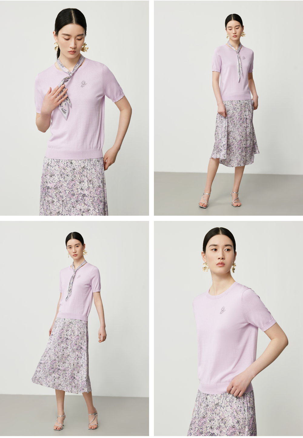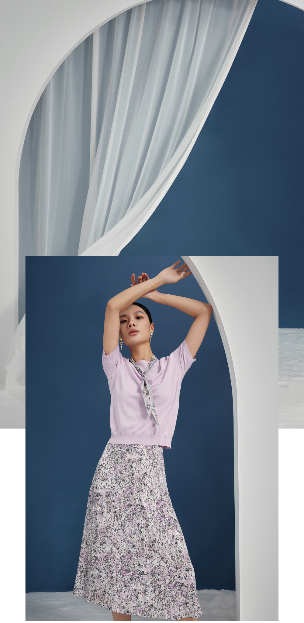 万紫千红的四月,万物复苏,去往公园赏花,去往草甸追风,当身体与桑蚕丝的柔美、棉呼吸感与羊绒云柔共鸣,透过短袖针织的疗愈穿搭,即刻开启一场花样旅行。