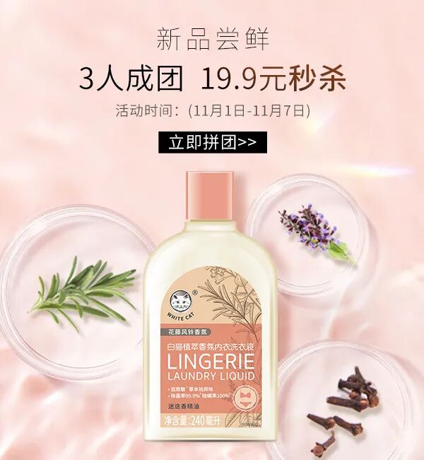 新品白猫植萃香氛内衣洗衣液实力上线!