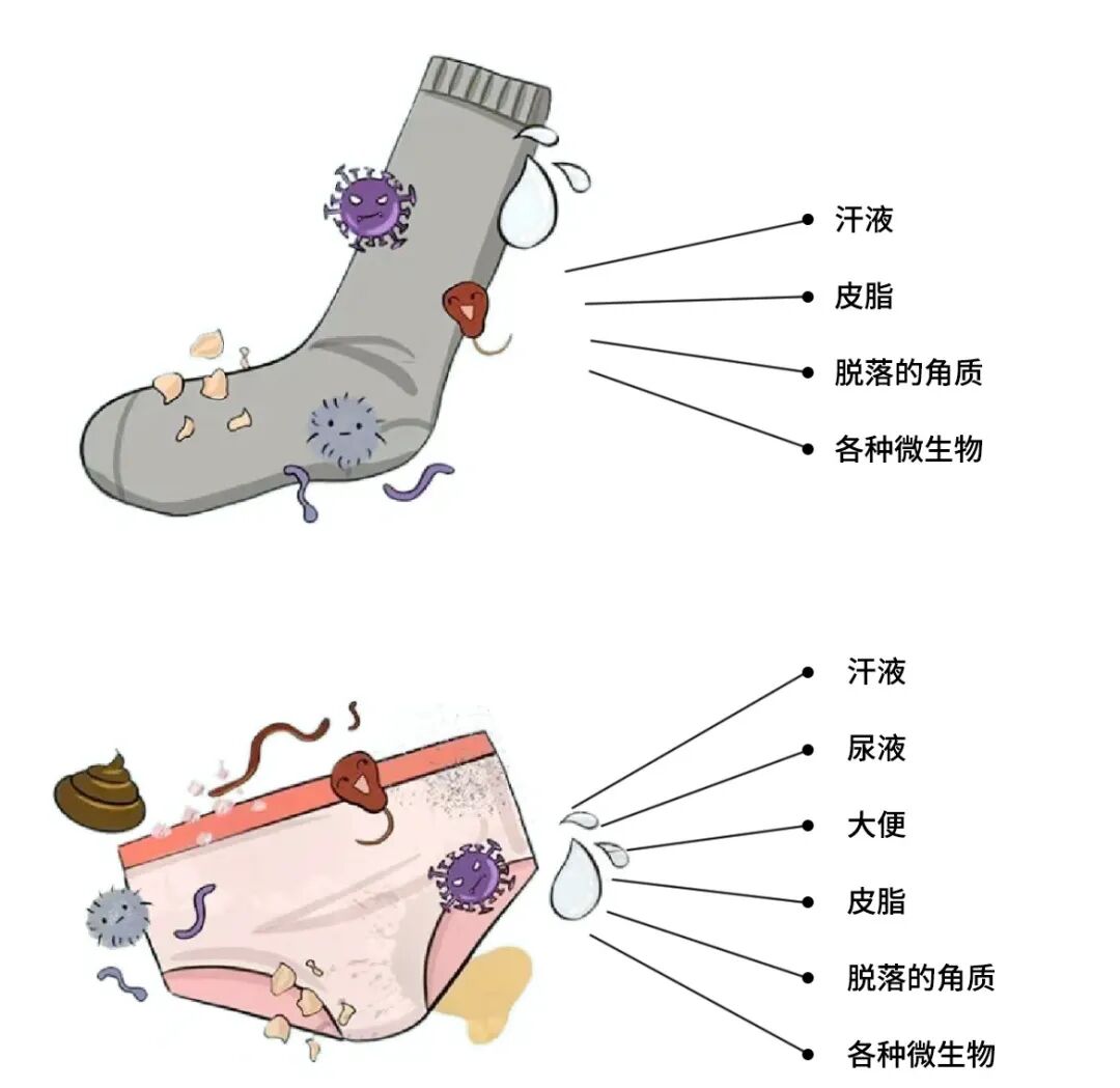 科学数据统计表明,我们穿过的内裤上会带有约0.08克粪便,来自粪便的病菌会超过1000个,寄生虫超过50个,在这个数据的基础上,女生的内衣,每穿一天就会有约0.1克的分泌物,大约相当于1亿个大肠杆菌。
