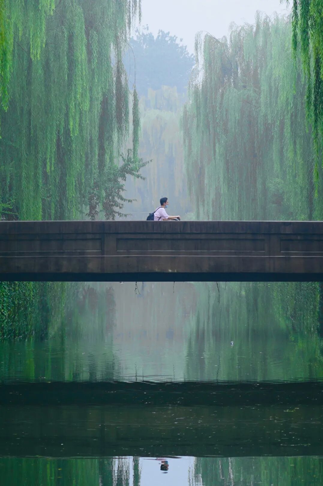 迎着微风,骑上专属紫色单车穿过清华路