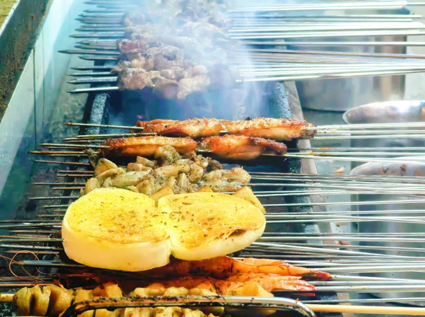 夜宵炸串、小龙虾、冒烤鸭、火鸡面