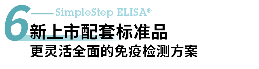 我们将推出更多SimpleStep ELISA® 试剂盒产品,包括高通量、竞争法SimpleStep ELISA® 试剂盒及蛋白标准品,为您的实验之路,保驾护航!